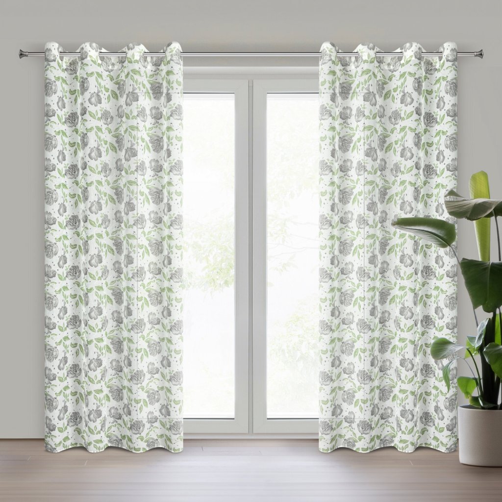 Hotový závěs s květinovým motivem a lesklým potiskem, šířka: 140 cm, délka: 250 cm, barva: vícebarevná, hmotnost: 75 GSM, složení: 100% polyester.Doplňkové parametry