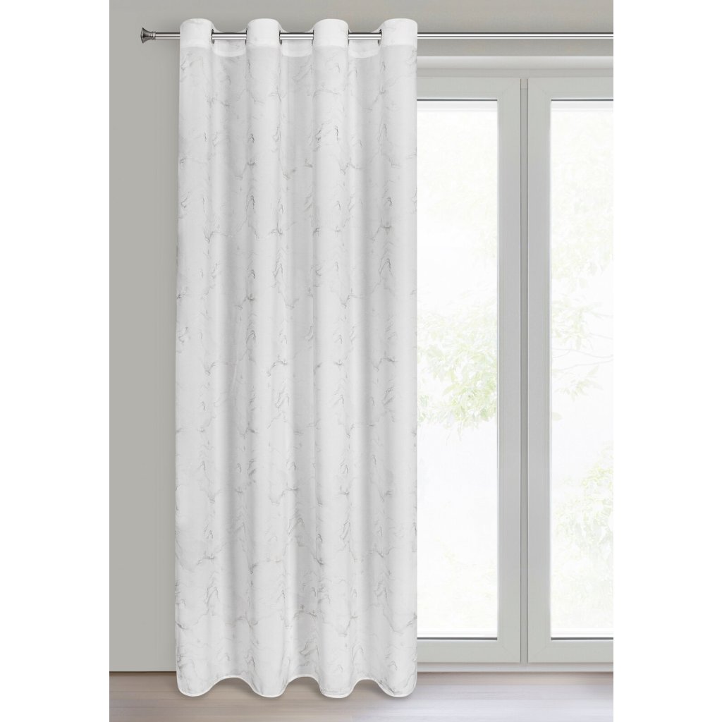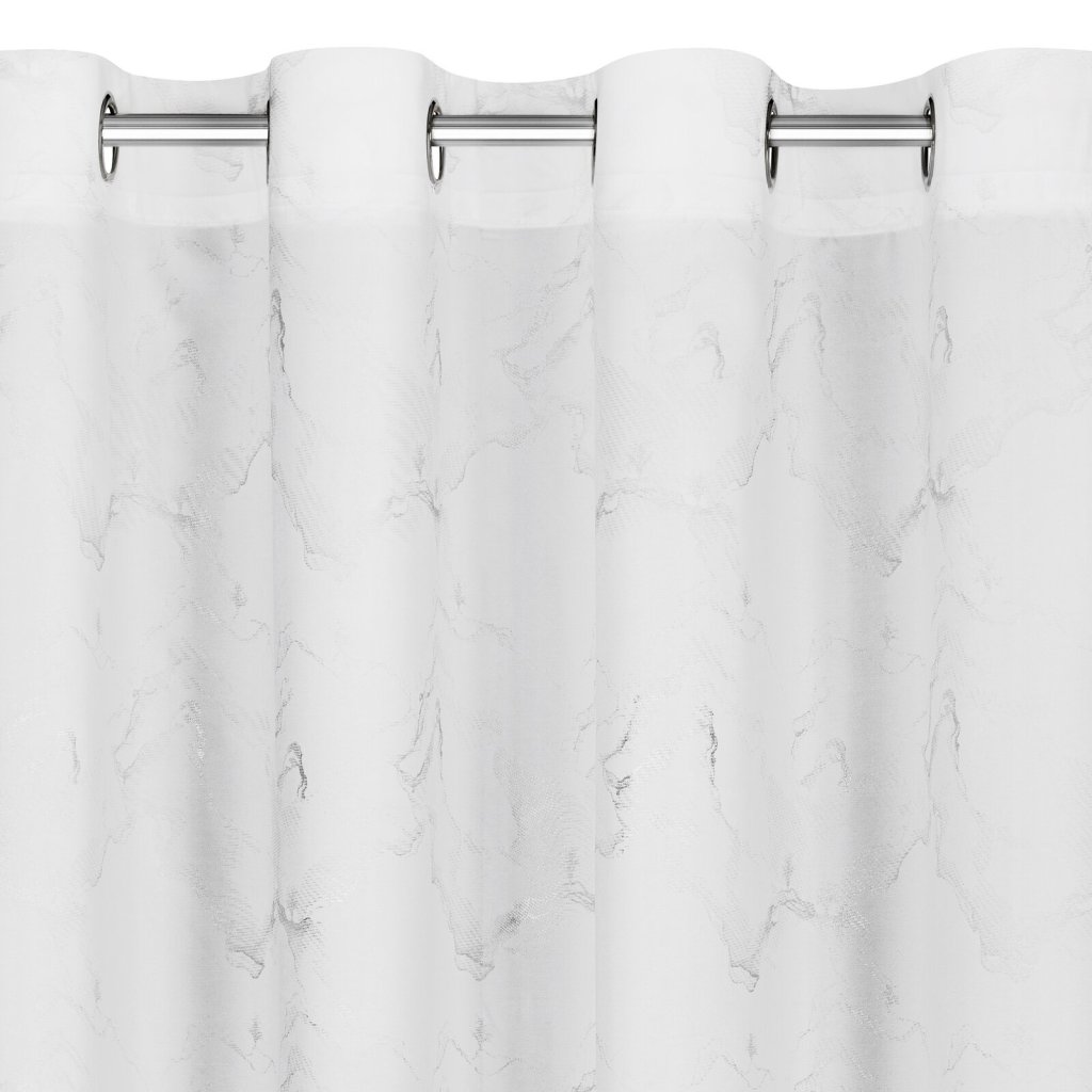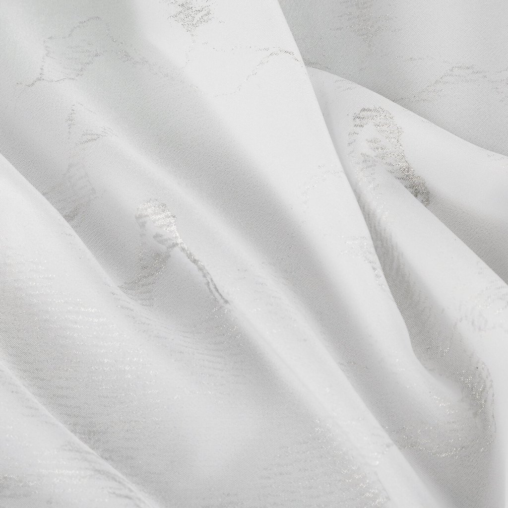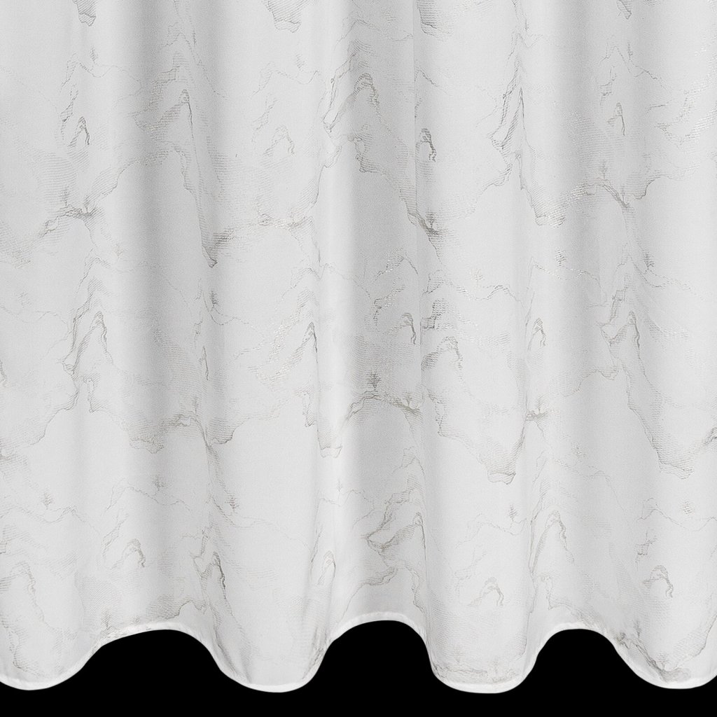 Hotový šifonový závěs EMILI s lesklým potiskem po celé délce závěsu, šířka: 140 cm, délka: 250 cm, barva: bílá a stříbrná, gramáž: 110 GSM, složení: 100% polyester.Doplňkové parametry