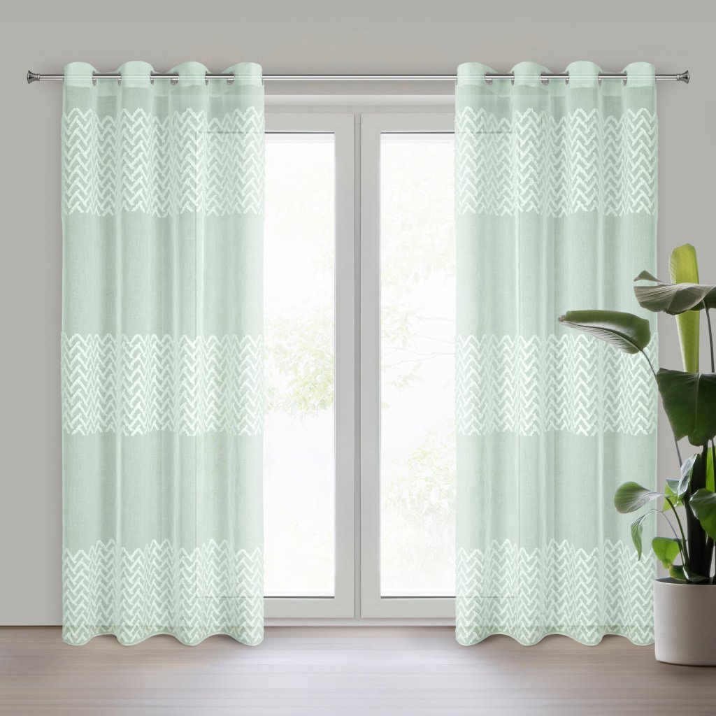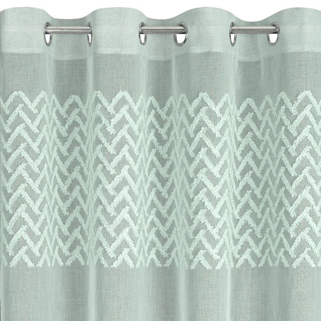 Hotový závěs zdobený geometrickou aplikací, šířka: 140 cm, délka: 250 cm, barva: mátová, hmotnost: 80 GSM, složení: 100% polyester.Doplňkové parametry