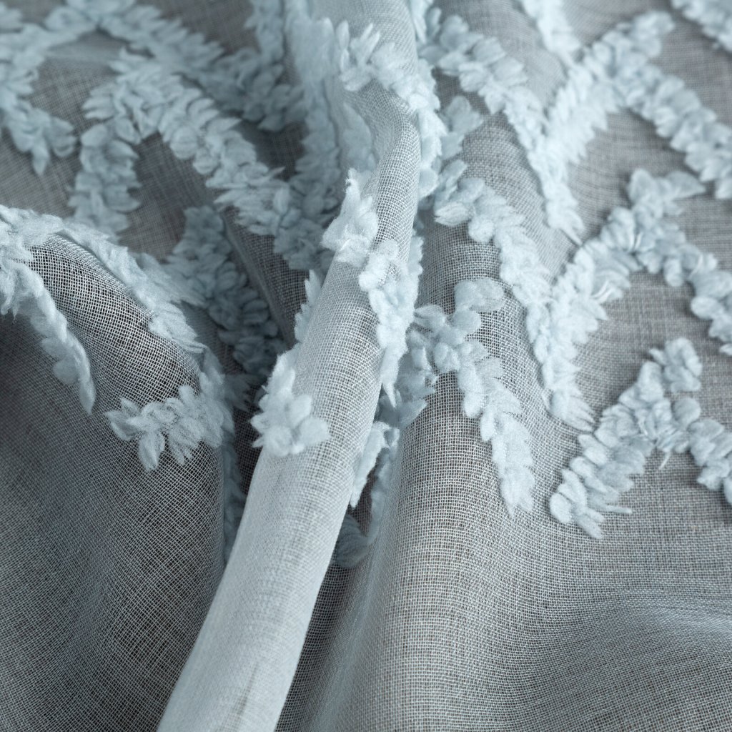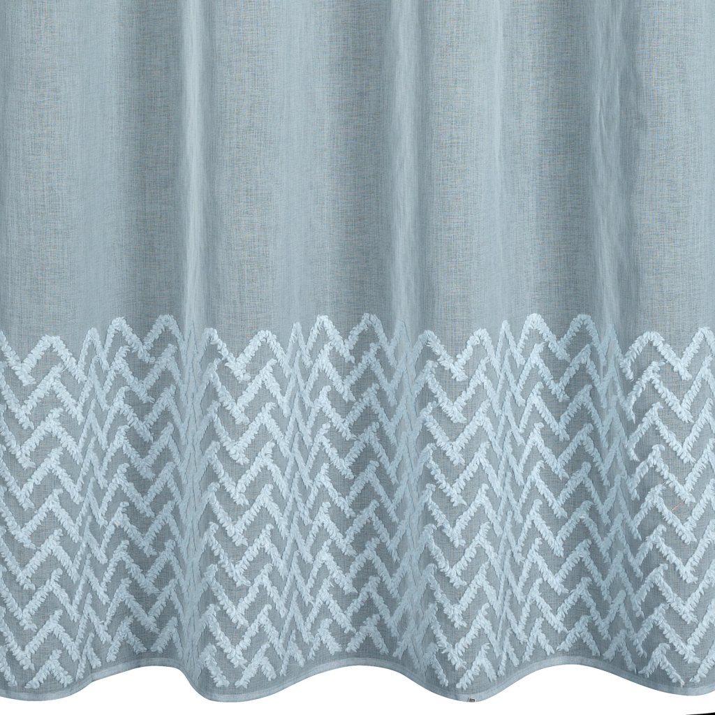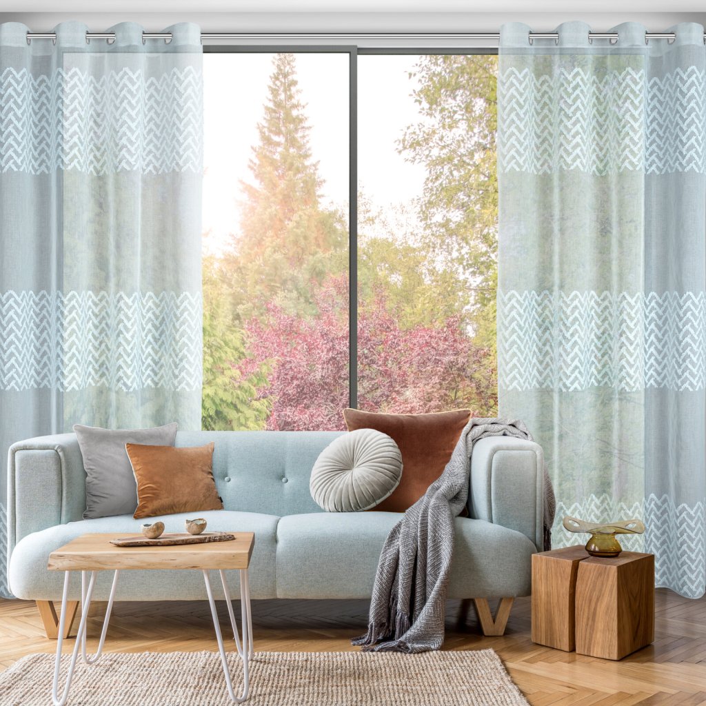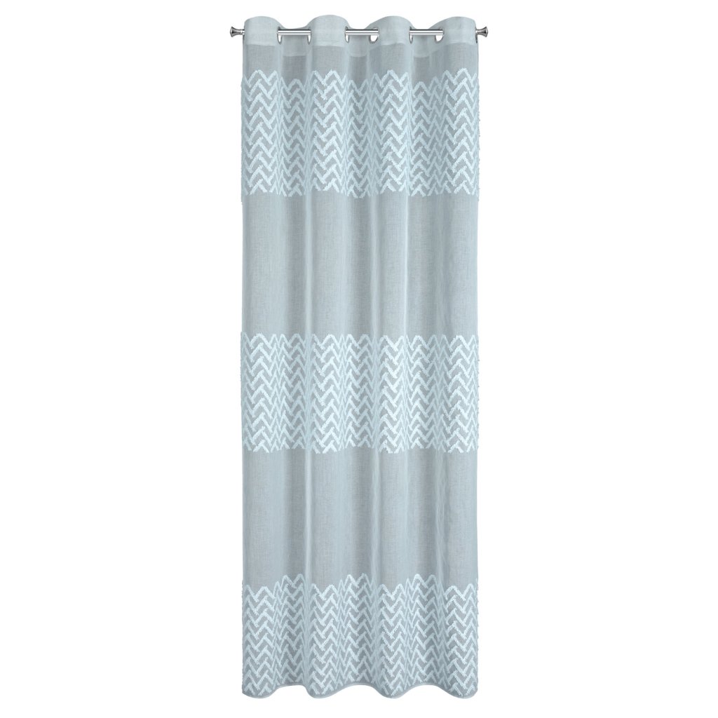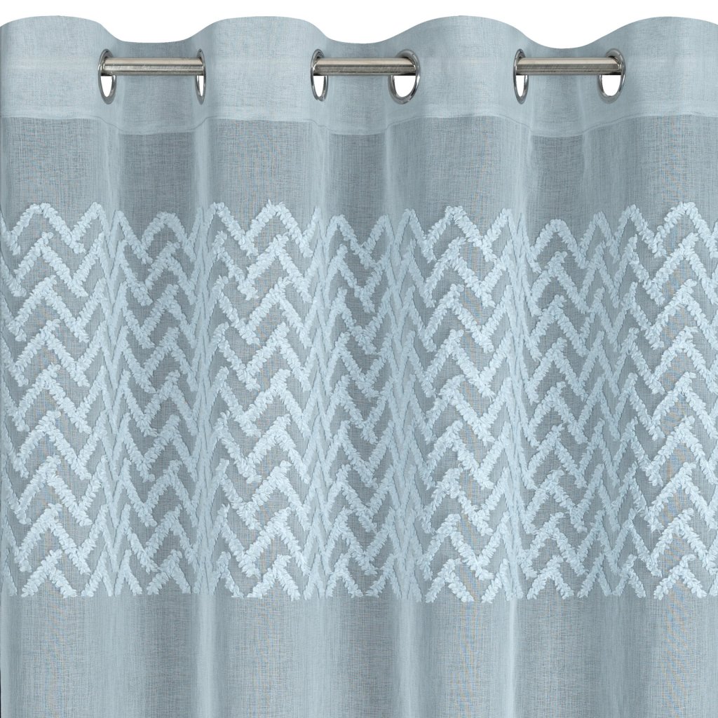 Hotový závěs zdobený geometrickou aplikací, šířka: 140 cm, délka: 250 cm, barva: světle modrá, hmotnost: 80 GSM, složení: 100% polyester.Doplňkové parametry
