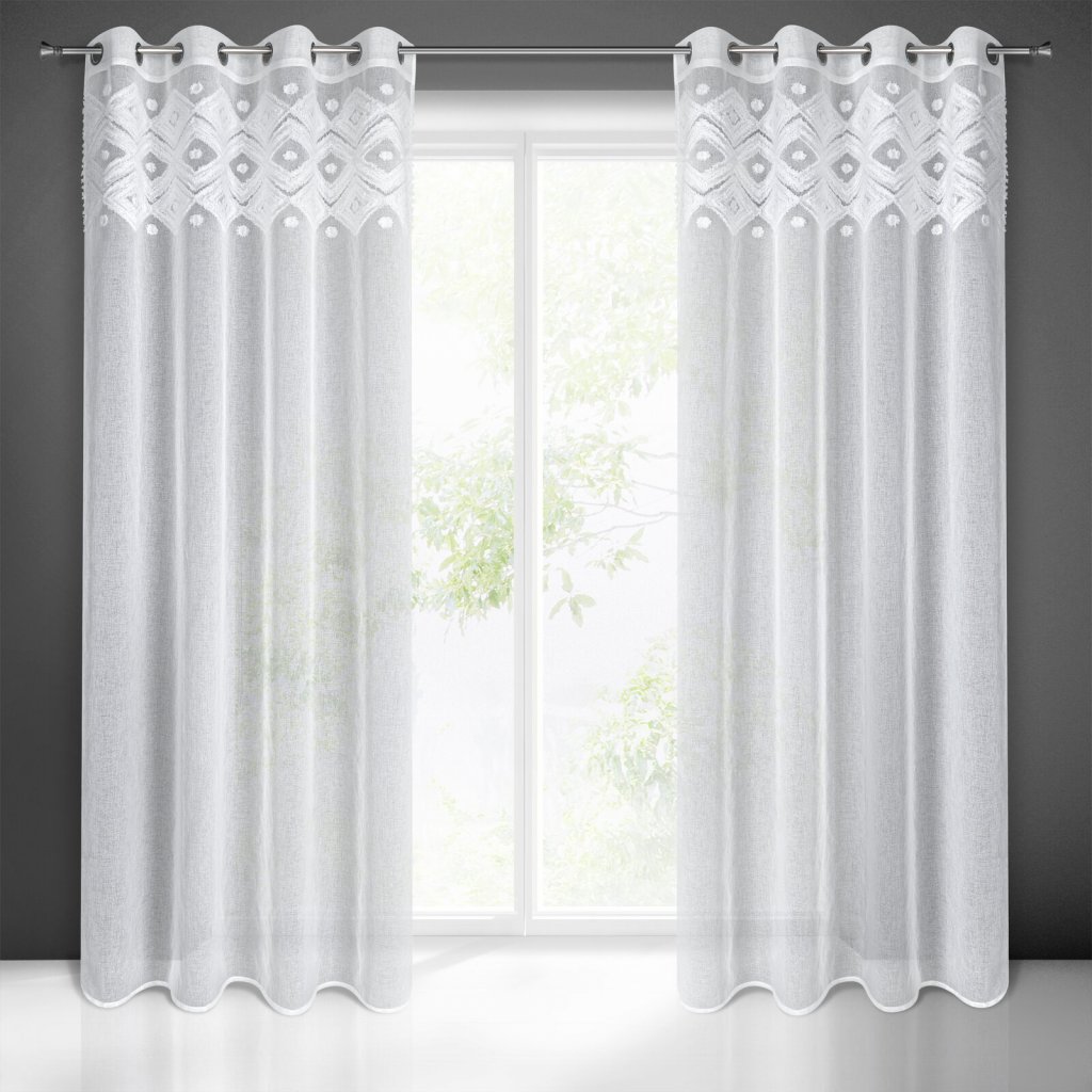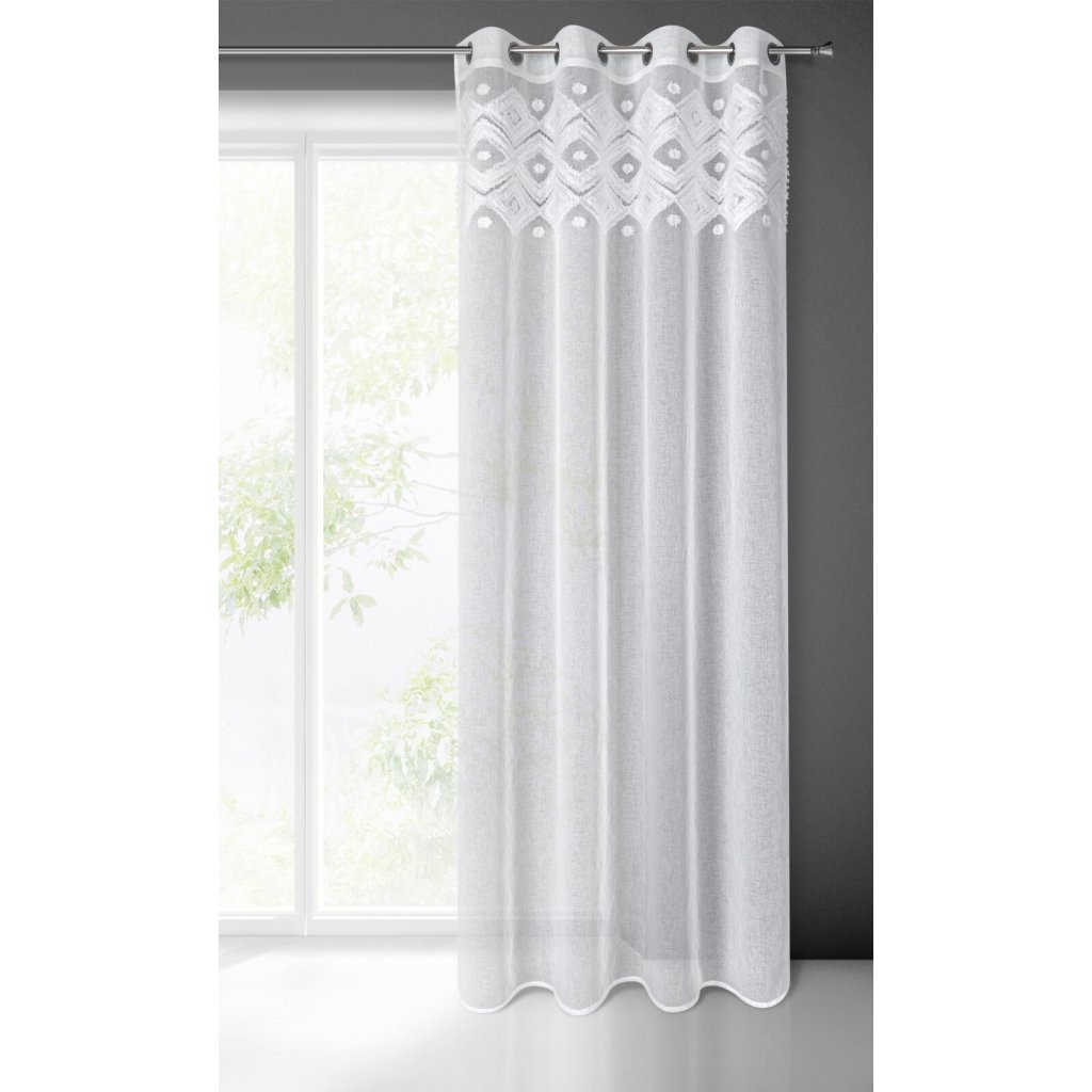 Závěs hotový v boho stylu, šířka: 140 cm, délka: 250 cm, barva: bílá, hmotnost: 100 GSM, složení: 100% polyester.Doplňkové parametry