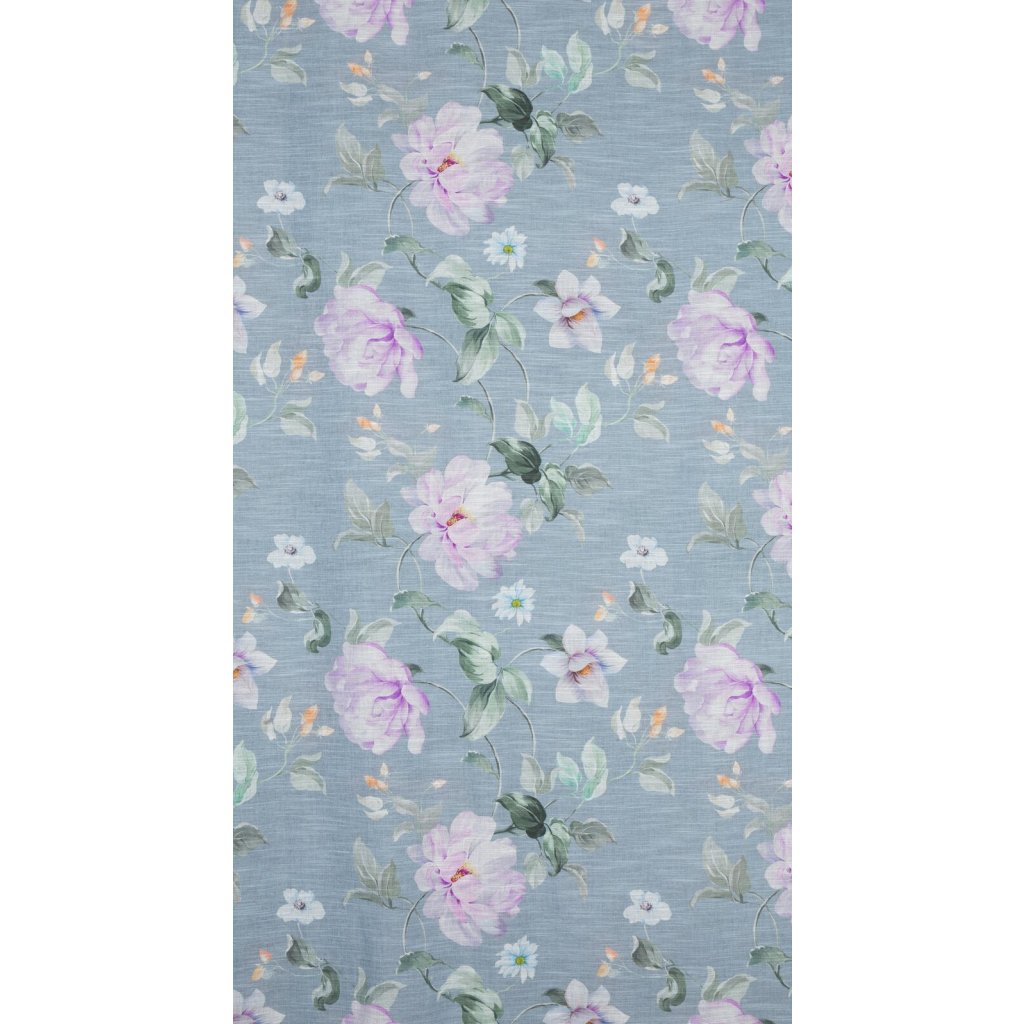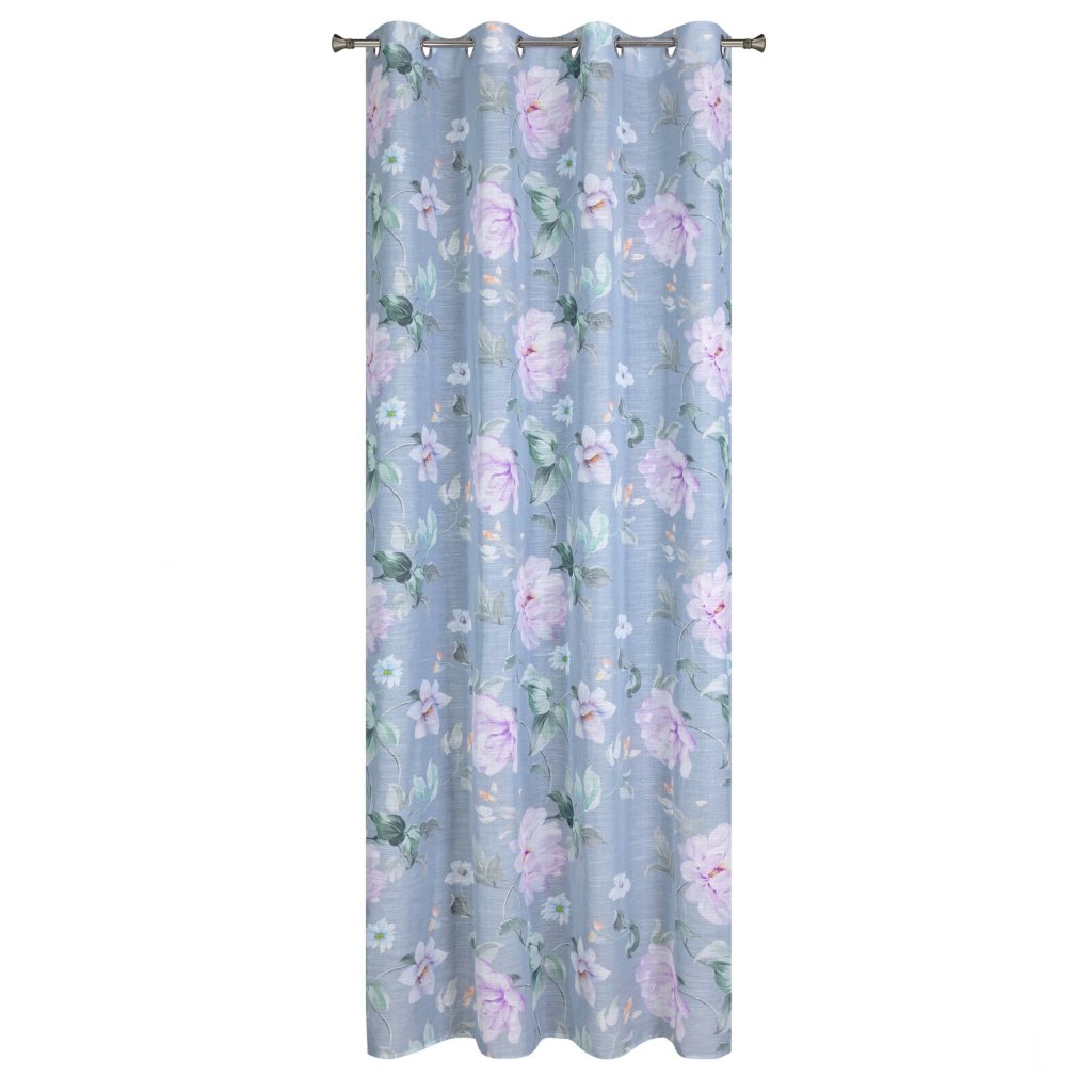 Závěs z etaminu s květinovým potiskem, šířka: 140 cm, délka: 250 cm, barva: modrá, hmotnost: 80 GSM, složení: 100 % polyesterDoplňkové parametry