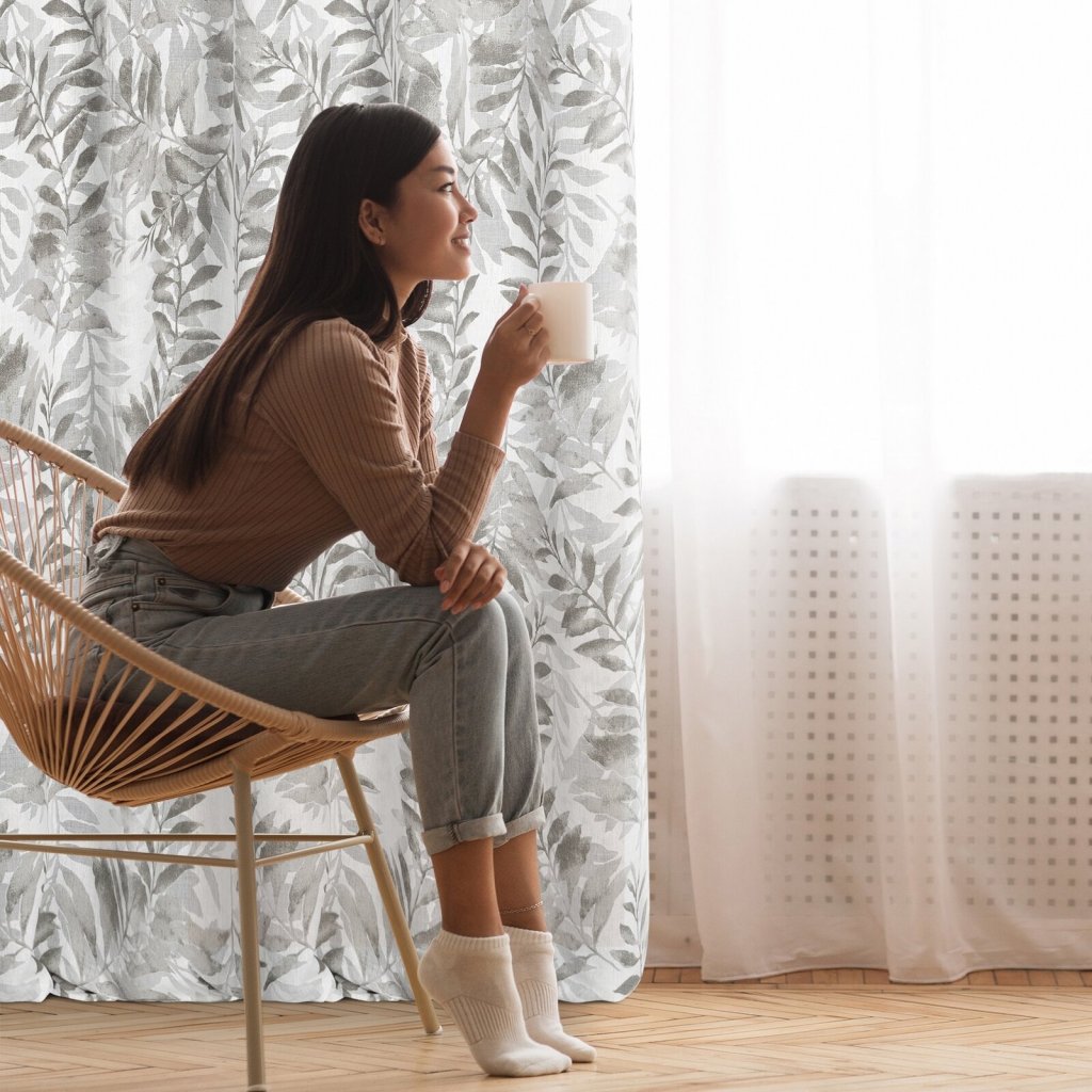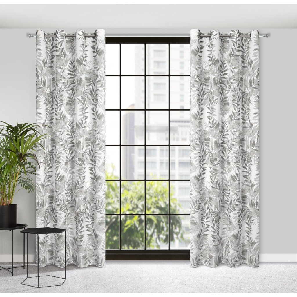 Závěs s květinovým motivem šířka: 140 cm, délka: 250 cm, barva: šedá, hmotnost: 120 GSM, složení: 100 % polyesterDoplňkové parametry