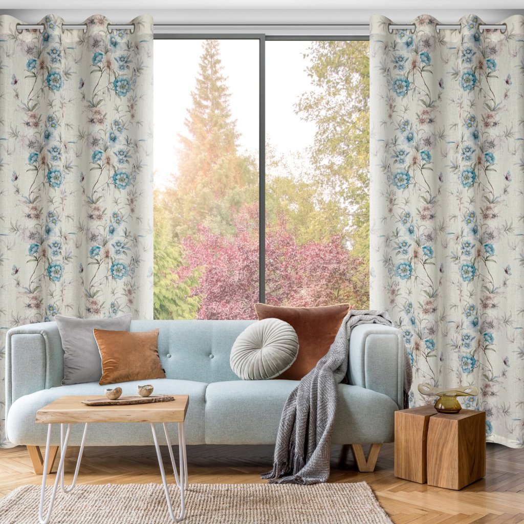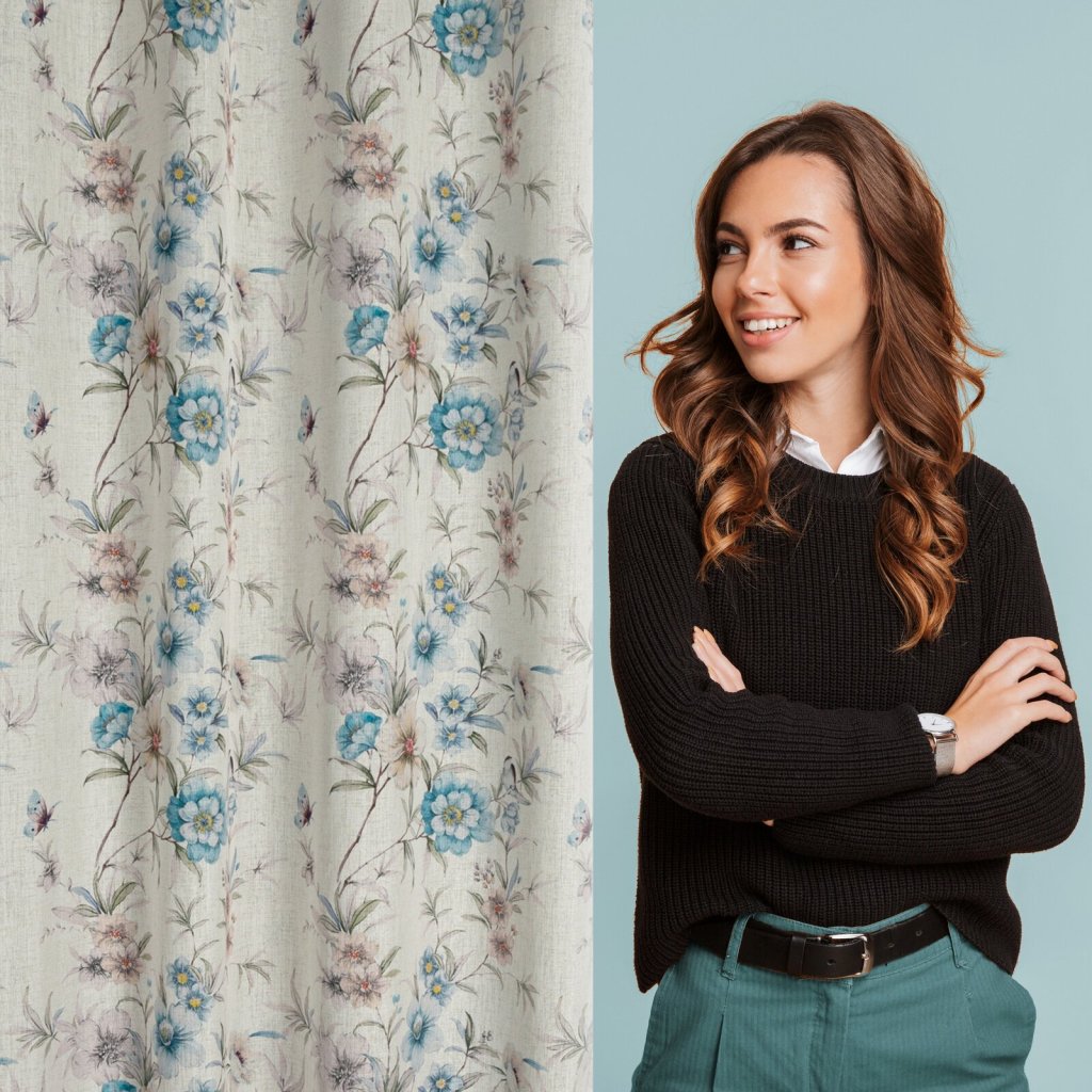 Hotový závěs v eko stylu s květinovým potiskem, šířka: 140 cm, délka: 250 cm, barva: vícebarevná, hmotnost: 130 GSM, složení: 100% polyester.Doplňkové parametry