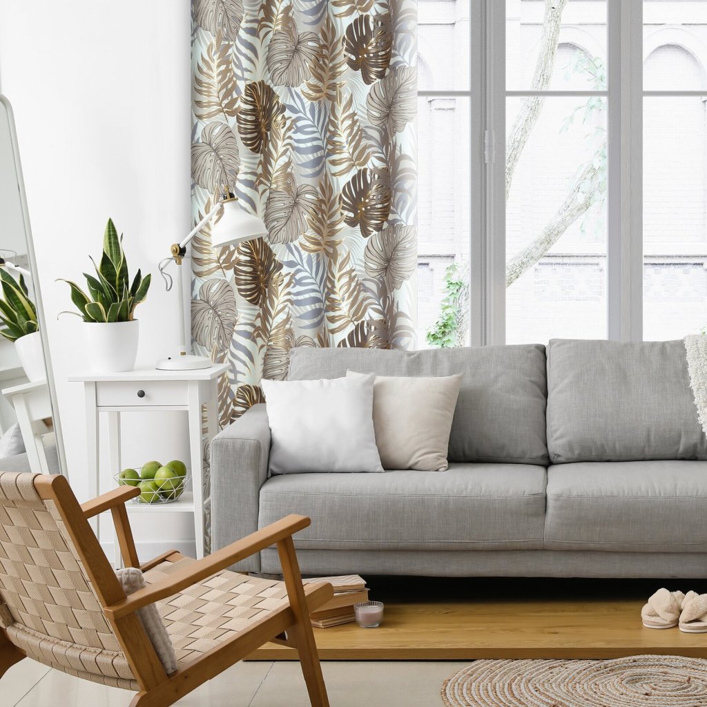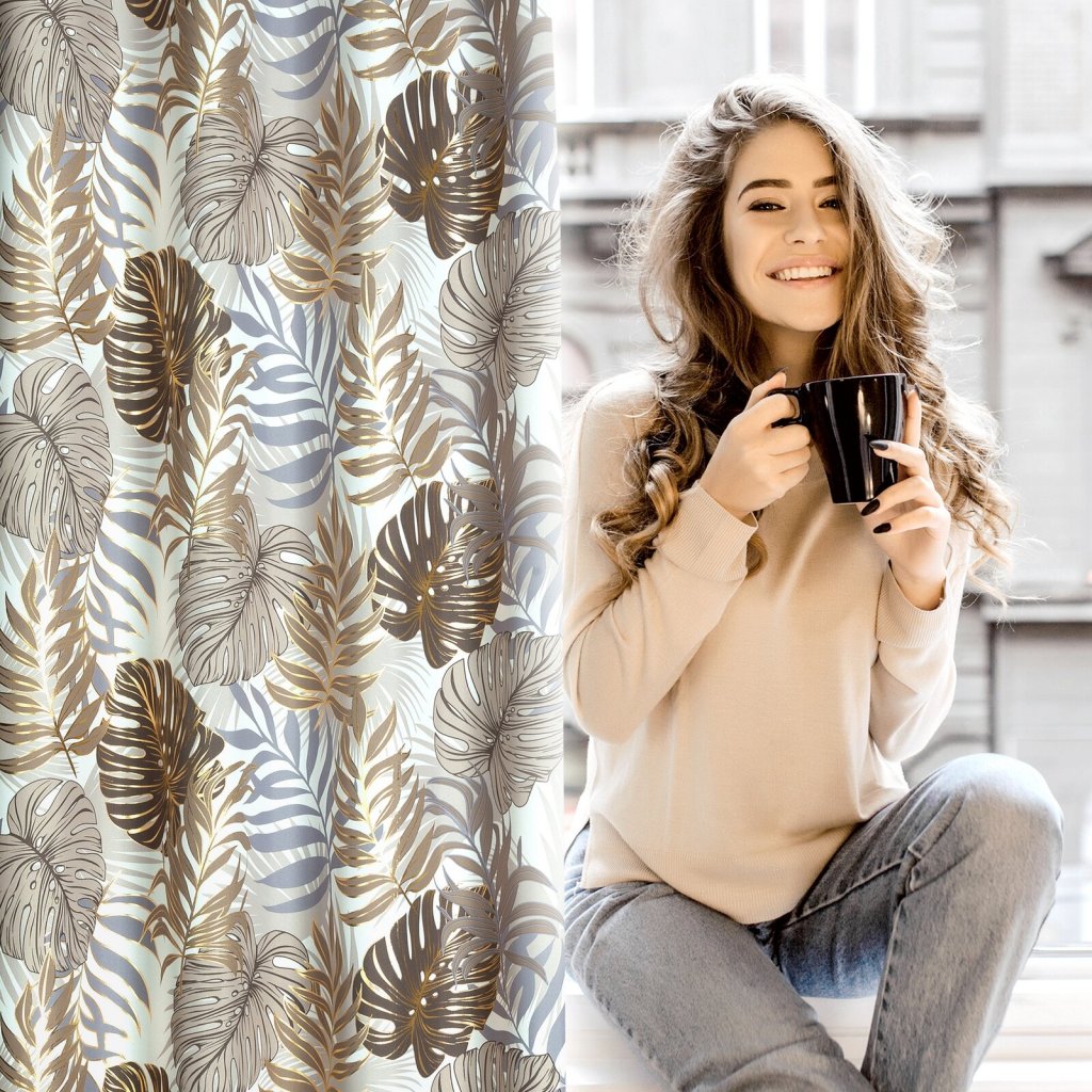 Závěs s botanickým motivem s lesklým potiskem, šířka: 140 cm, délka: 250 cm, barva: vícebarevná, gramáž: 135 GSM, složení: 100% polyester.Doplňkové parametry