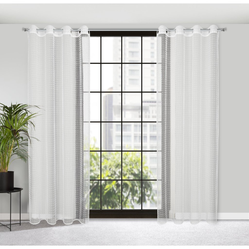Hotový závěs ze síťoviny, šířka: 140 cm, délka: 250 cm, barva: bílá, hmotnost: 100 GSM, složení: 100% polyester.Doplňkové parametry