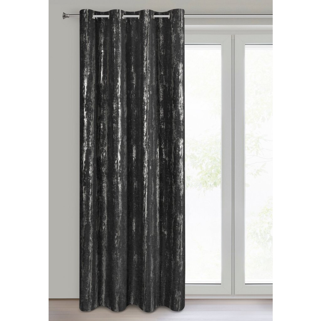 Hotový závěs s lesklým stříbrným potiskem, šířka: 140 cm, délka: 250 cm, barva: černá a stříbrná, hmotnost: 75 GSM, složení: 100% polyester.Doplňkové parametry