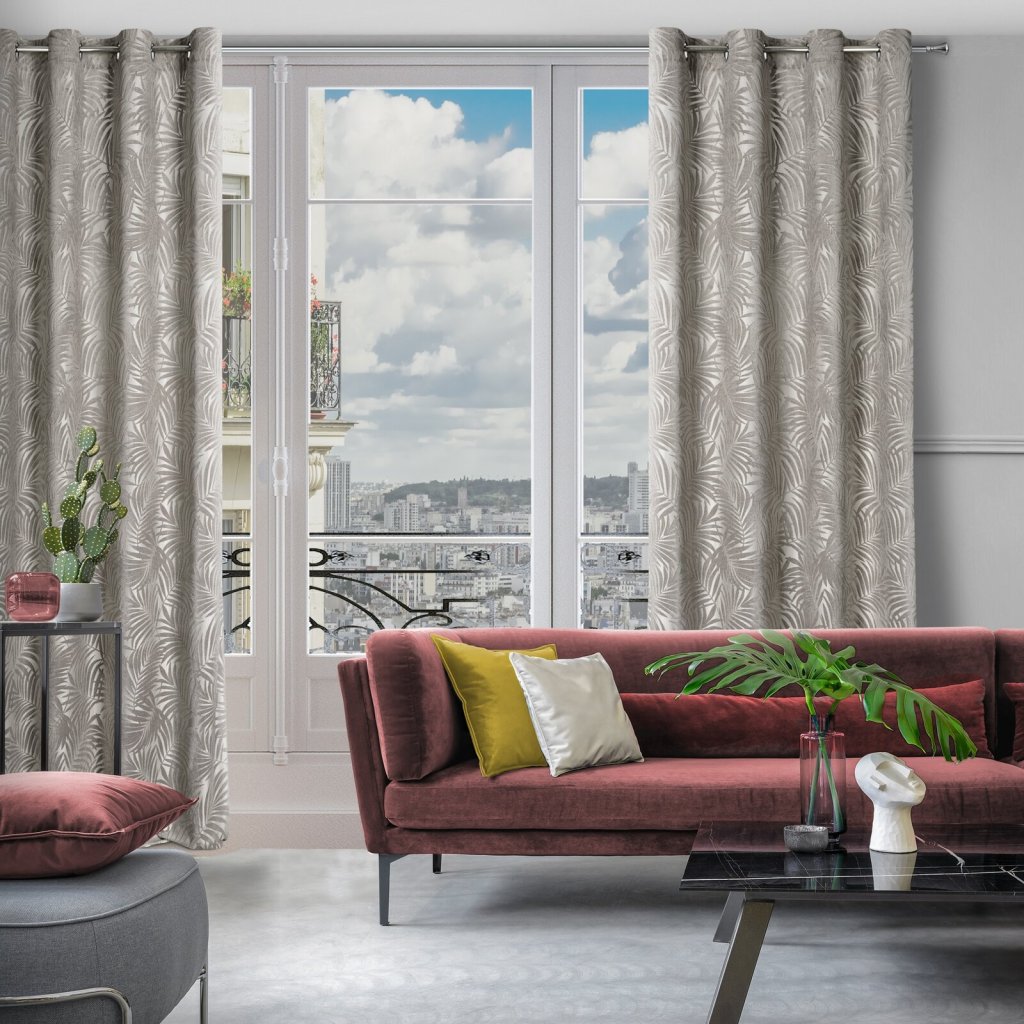Jednobarevný závěs s květinovým motivem šířka: 140 cm, délka: 250 cm, barva: béžová, hmotnost: 200 GSM, složení: 100 % polyesterDoplňkové parametry