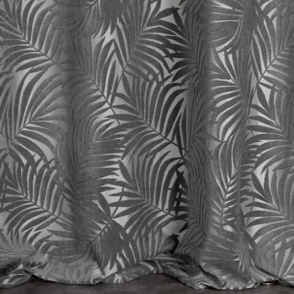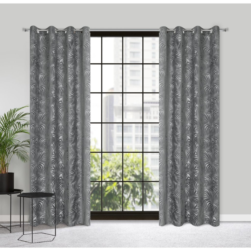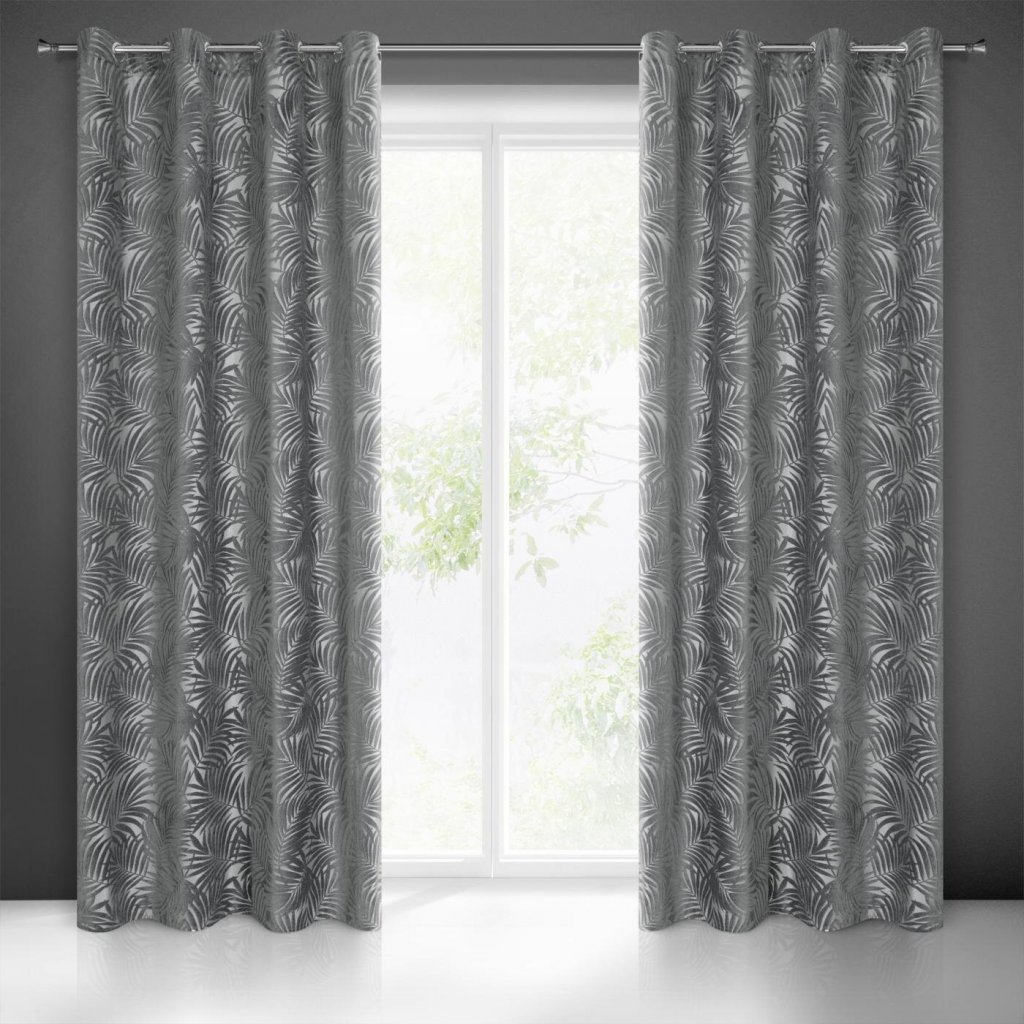 Jednobarevný závěs s květinovým motivem šířka: 140 cm, délka: 250 cm, barva: šedá, hmotnost: 200 GSM, složení: 100 % polyesterDoplňkové parametry