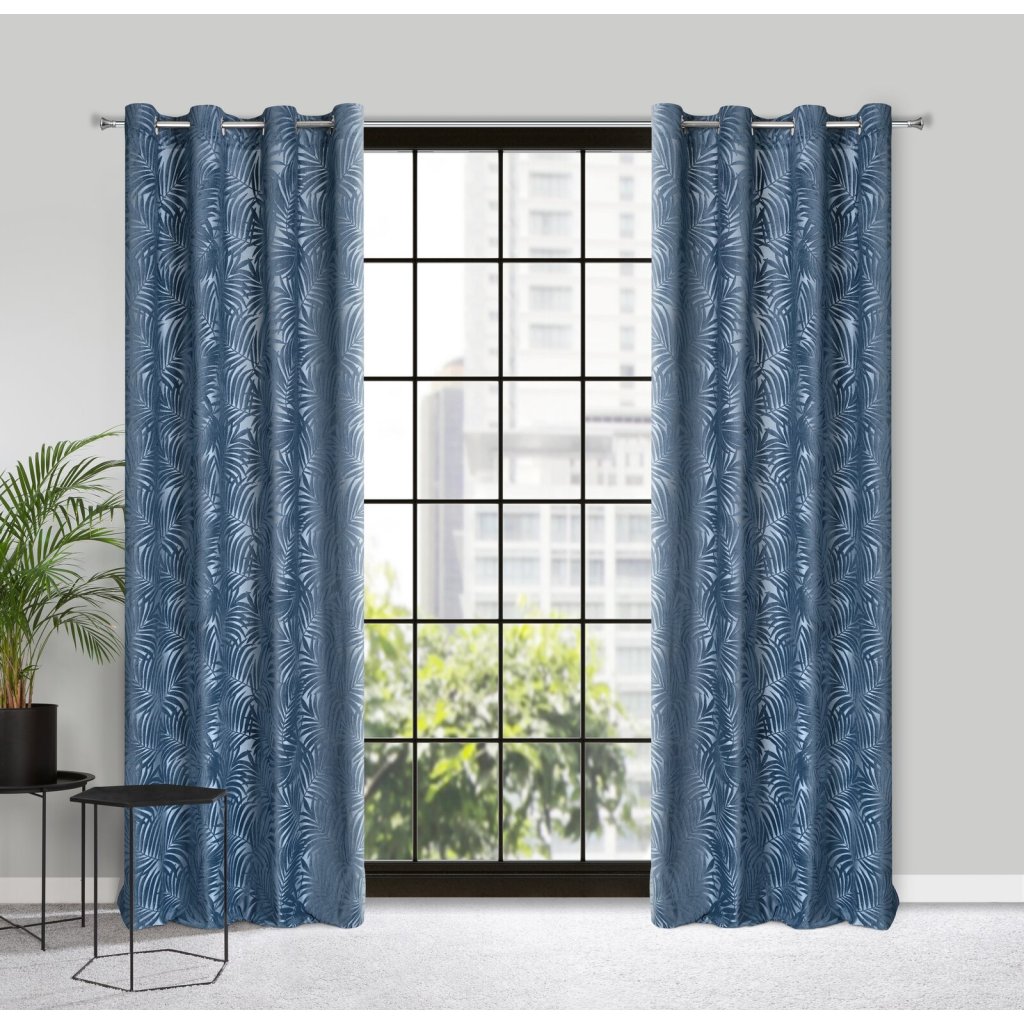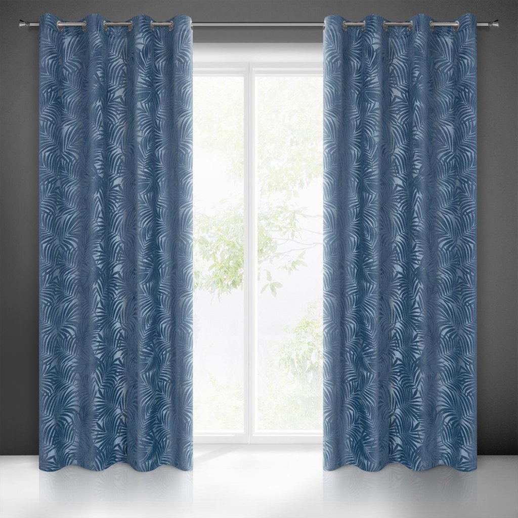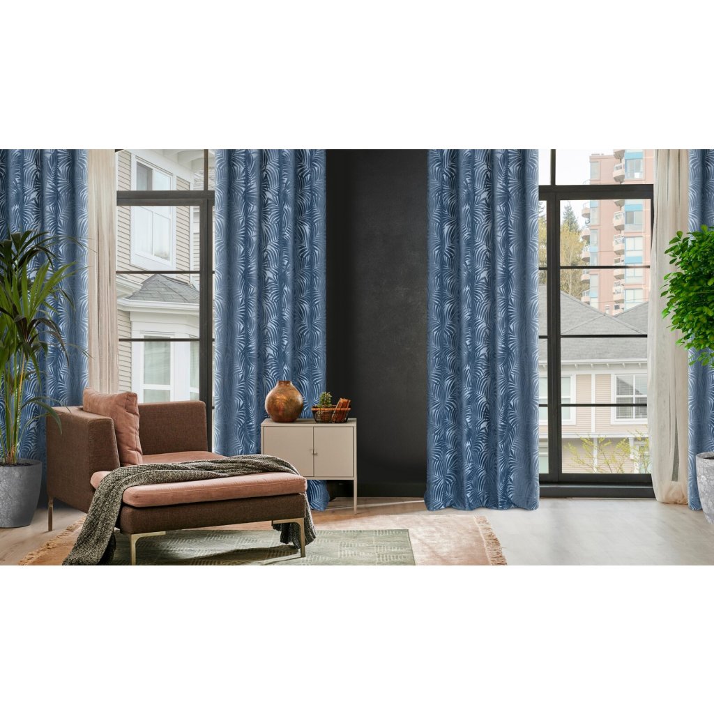 Jednobarevný závěs s květinovým motivem šířka: 140 cm, délka: 250 cm, barva: tmavě modrá, hmotnost: 200 GSM, složení: 100 % polyesterDoplňkové parametry