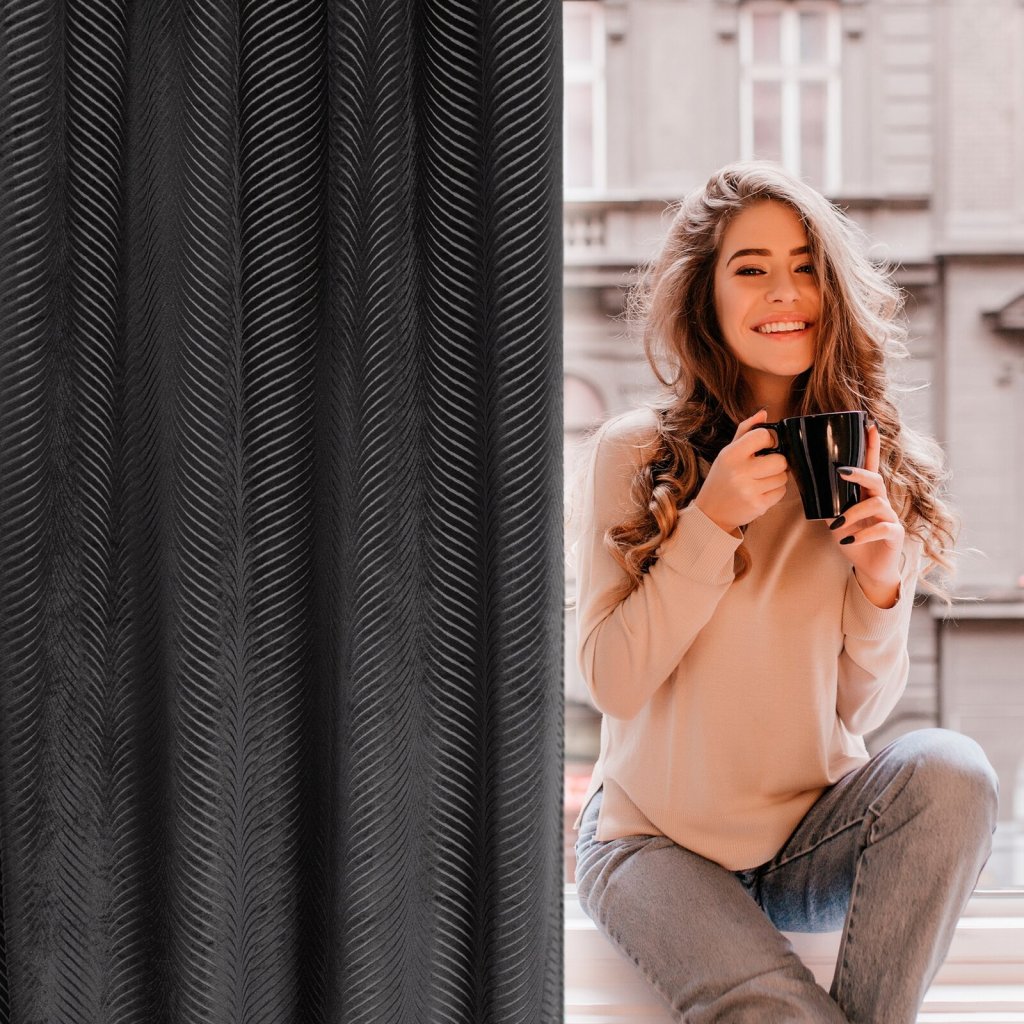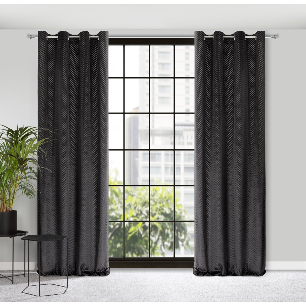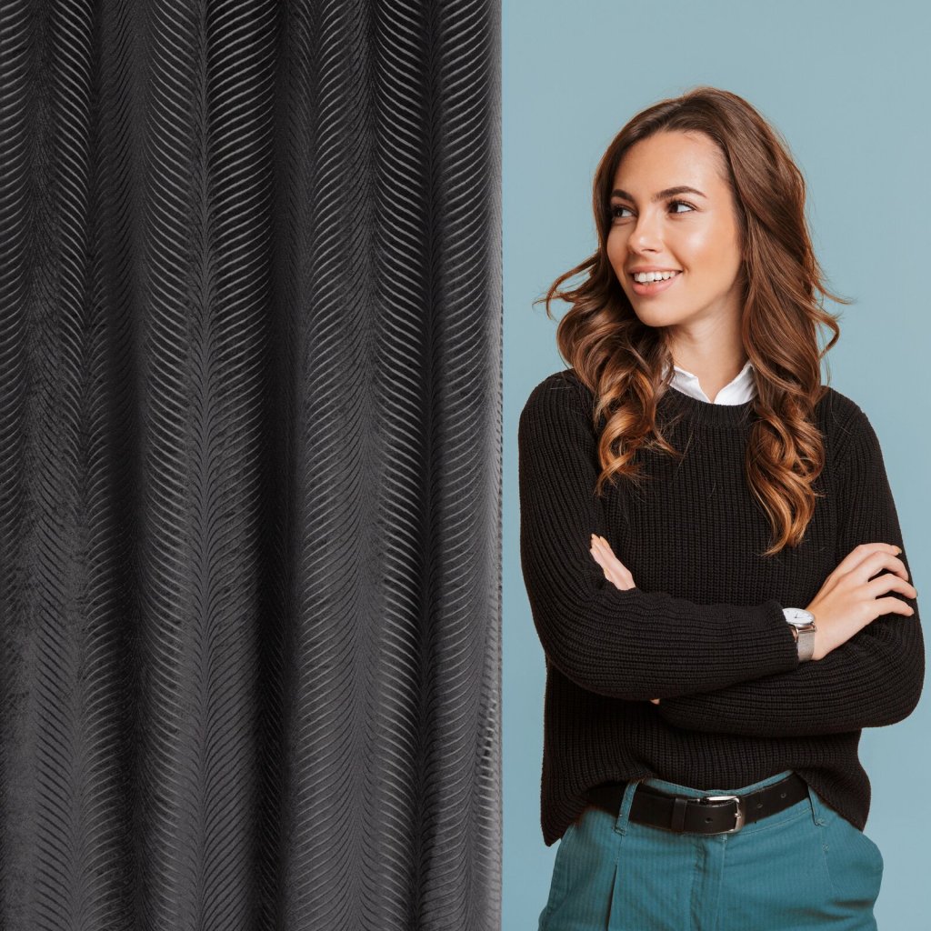 Závěs z žakárového sametu, lesklá s geometrickým motivem, šířka: 140 cm, délka: 250 cm, barva: černá, hmotnost: 190 GSM, složení: 100 % polyesterDoplňkové parametry