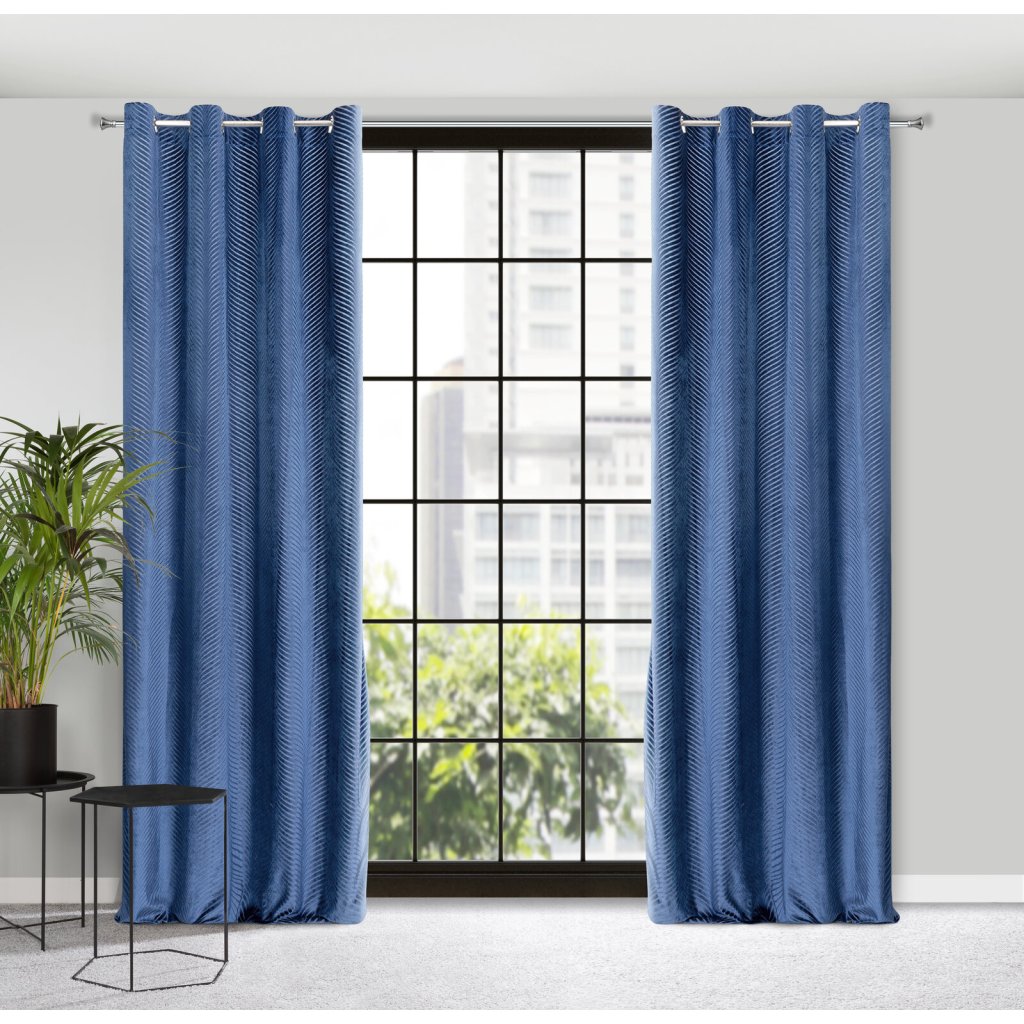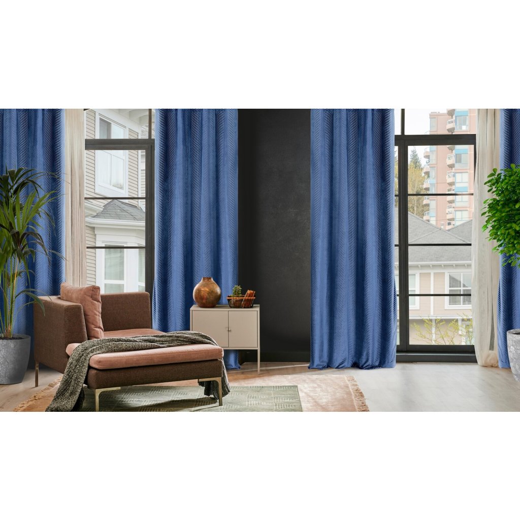 Závěs z žakárového sametu, lesklá s geometrickým motivem, šířka: 140 cm, délka: 250 cm, barva: námořnická modrá, hmotnost: 190 GSM, složení: 100 % polyesterDoplňkové parametry
