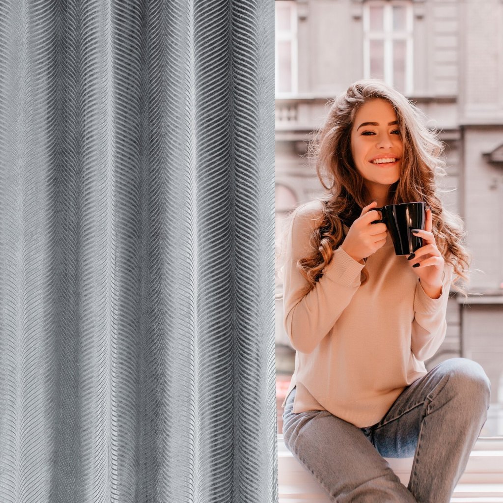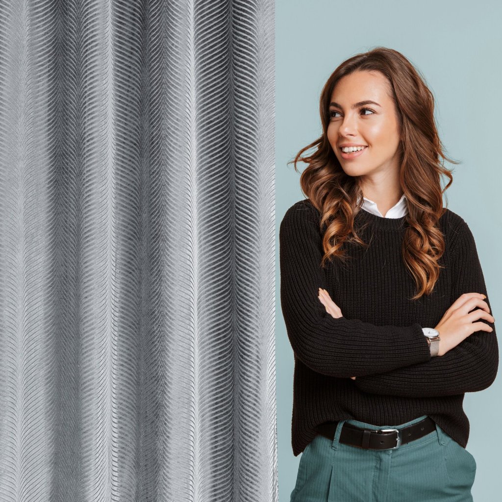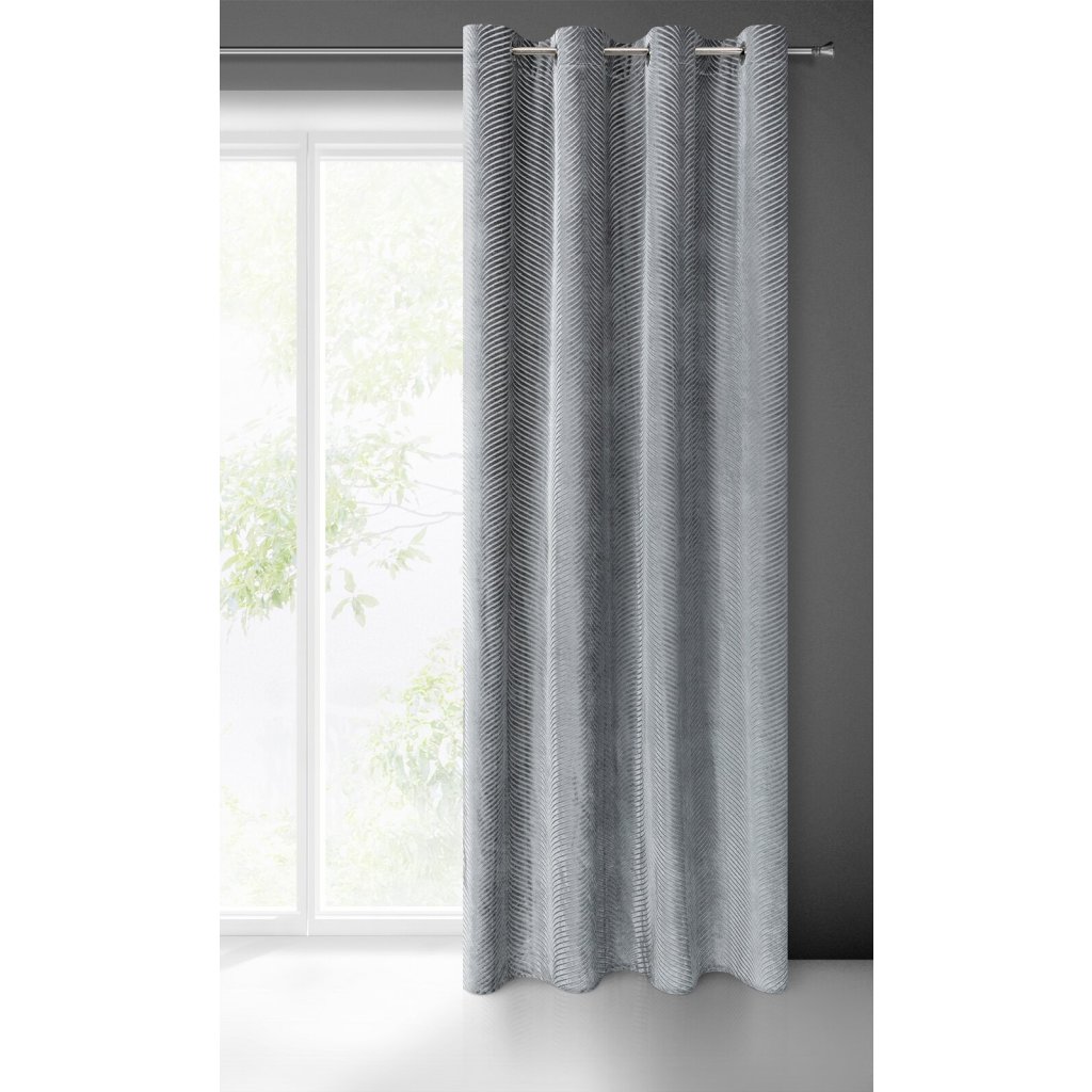 Žakárový sametový závěs, lesklý s geometrickým motivem šířka: 140 cm, délka: 250 cm, barva: šedá, hmotnost: 195 GSM, složení: 100 % polyesterDoplňkové parametry