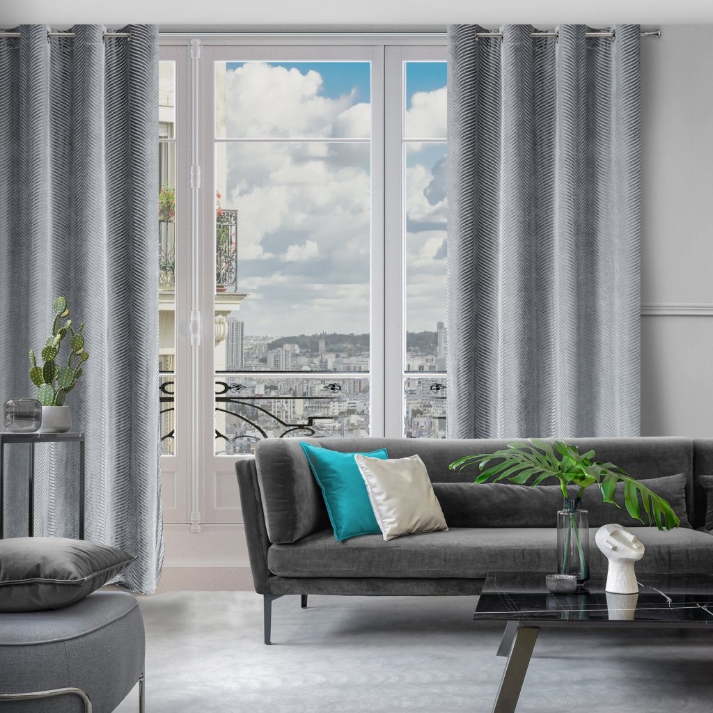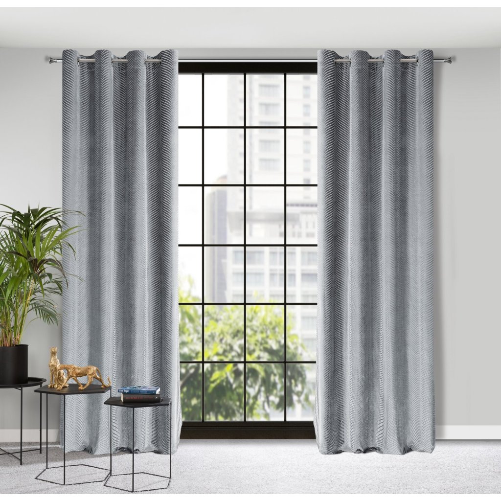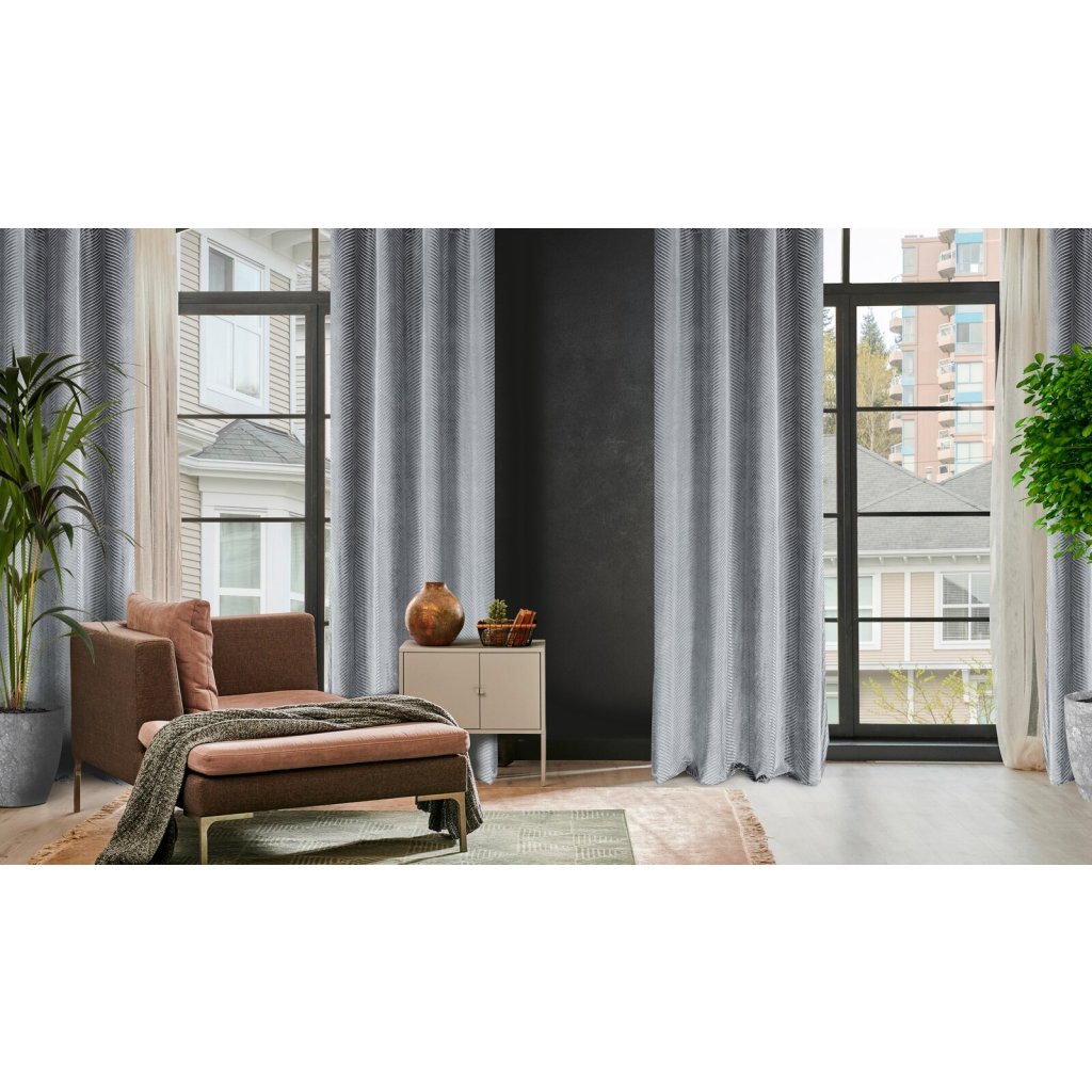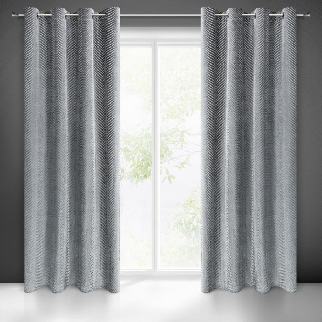 Žakárový sametový závěs, lesklý s geometrickým motivem šířka: 140 cm, délka: 250 cm, barva: šedá, hmotnost: 195 GSM, složení: 100 % polyesterDoplňkové parametry