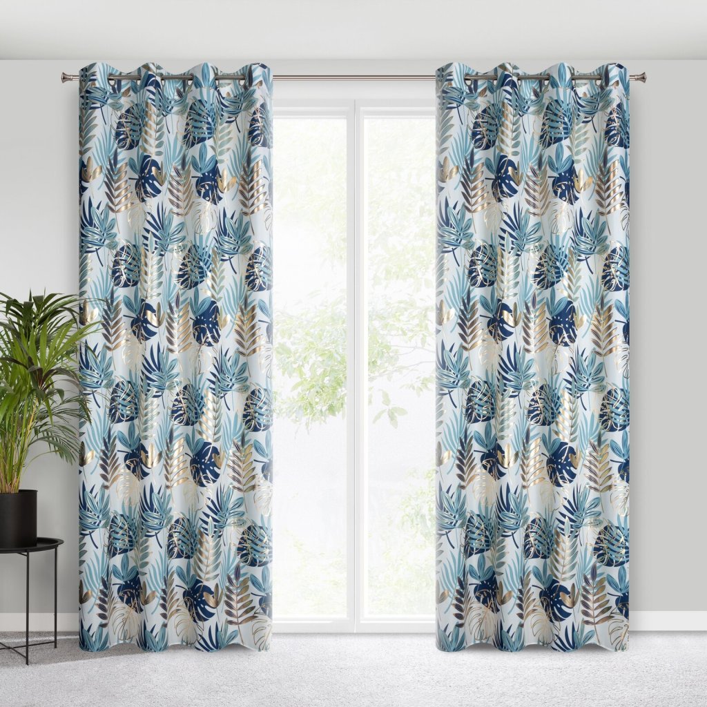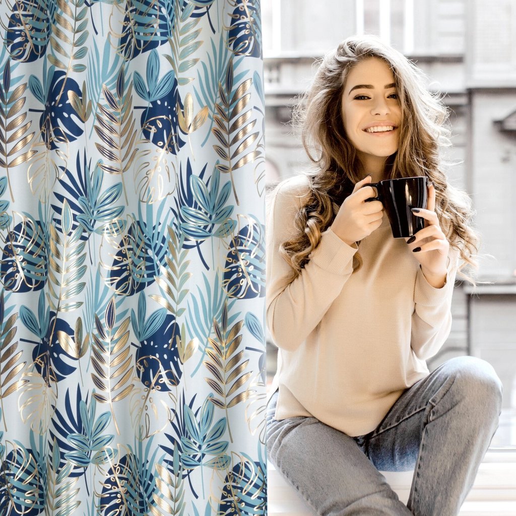 Závěs s lesklým botanickým motivem, šířka: 140 cm, délka: 250 cm, barva: vícebarevná, hmotnost: 135 GSM, složení: 100% polyester.Doplňkové parametry