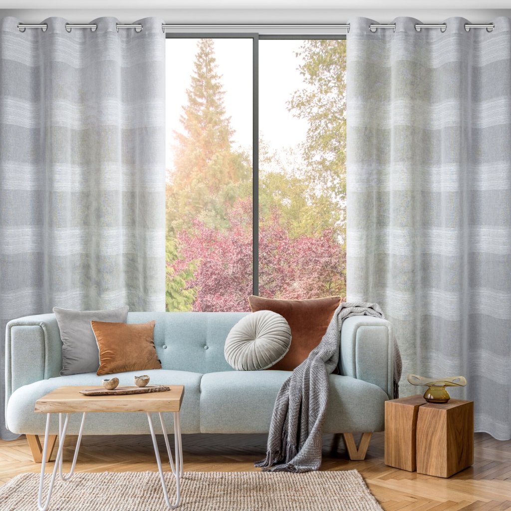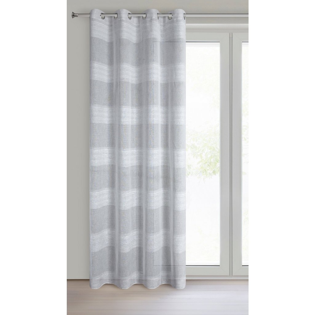 Hotový závěs s žinylkovými proužky, šířka: 140 cm, délka: 250 cm, barva: stříbrná, hmotnost: 120 GSM, složení: 100% polyester.Doplňkové parametry