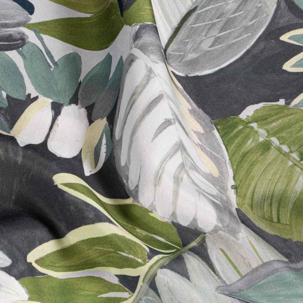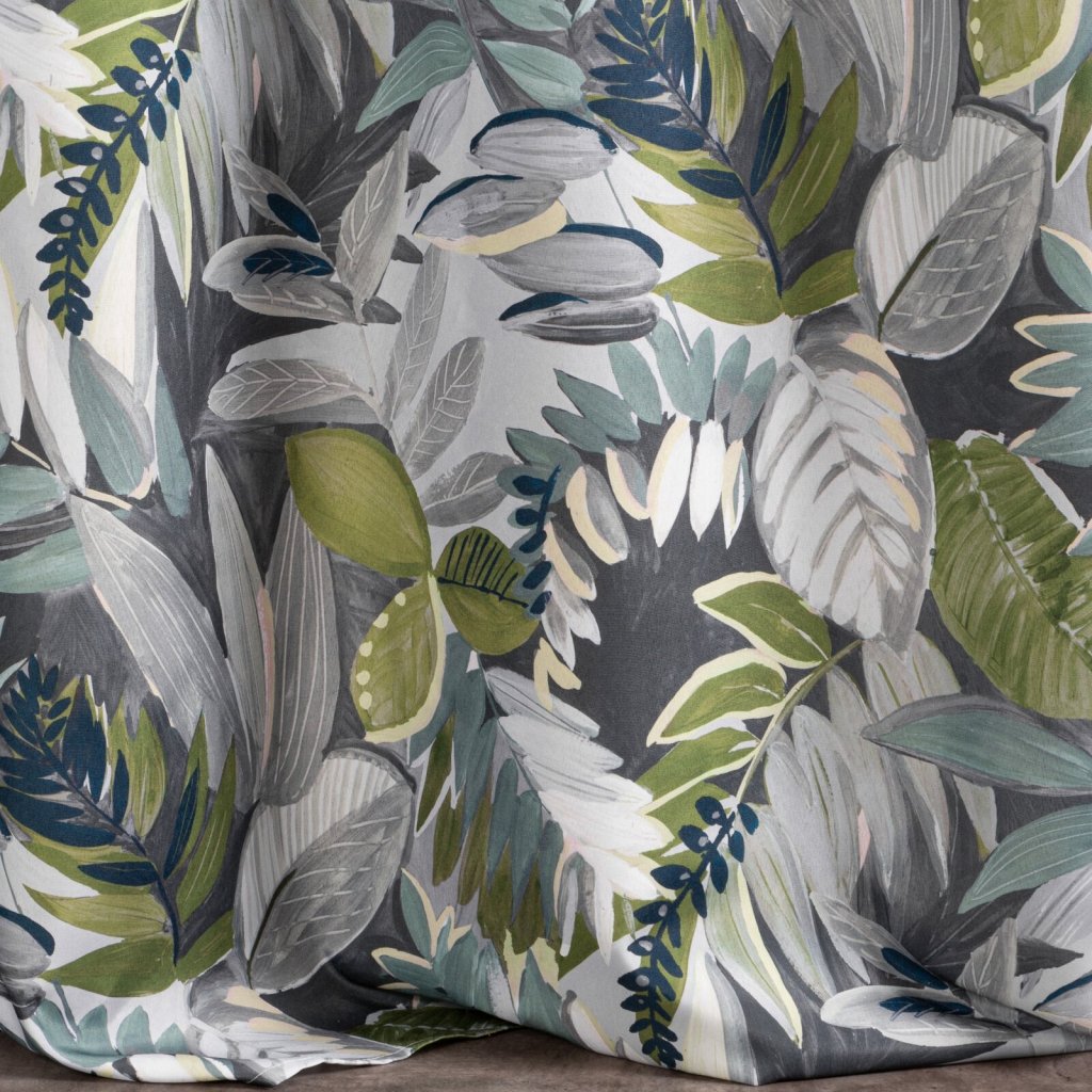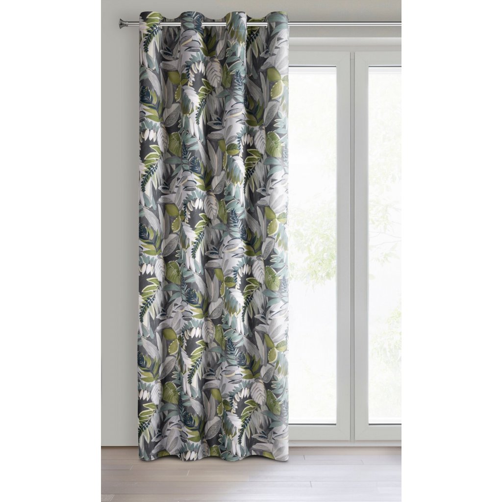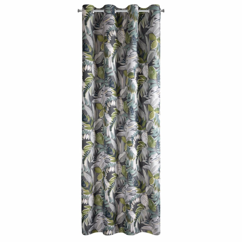 Závěs s botanickým motivem, barva: ocel, hmotnost: 145 GSM, složení: 100% polyester.Doplňkové parametry