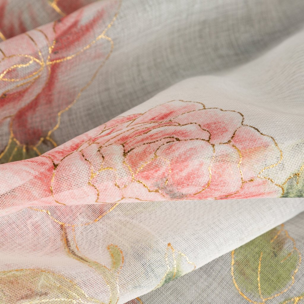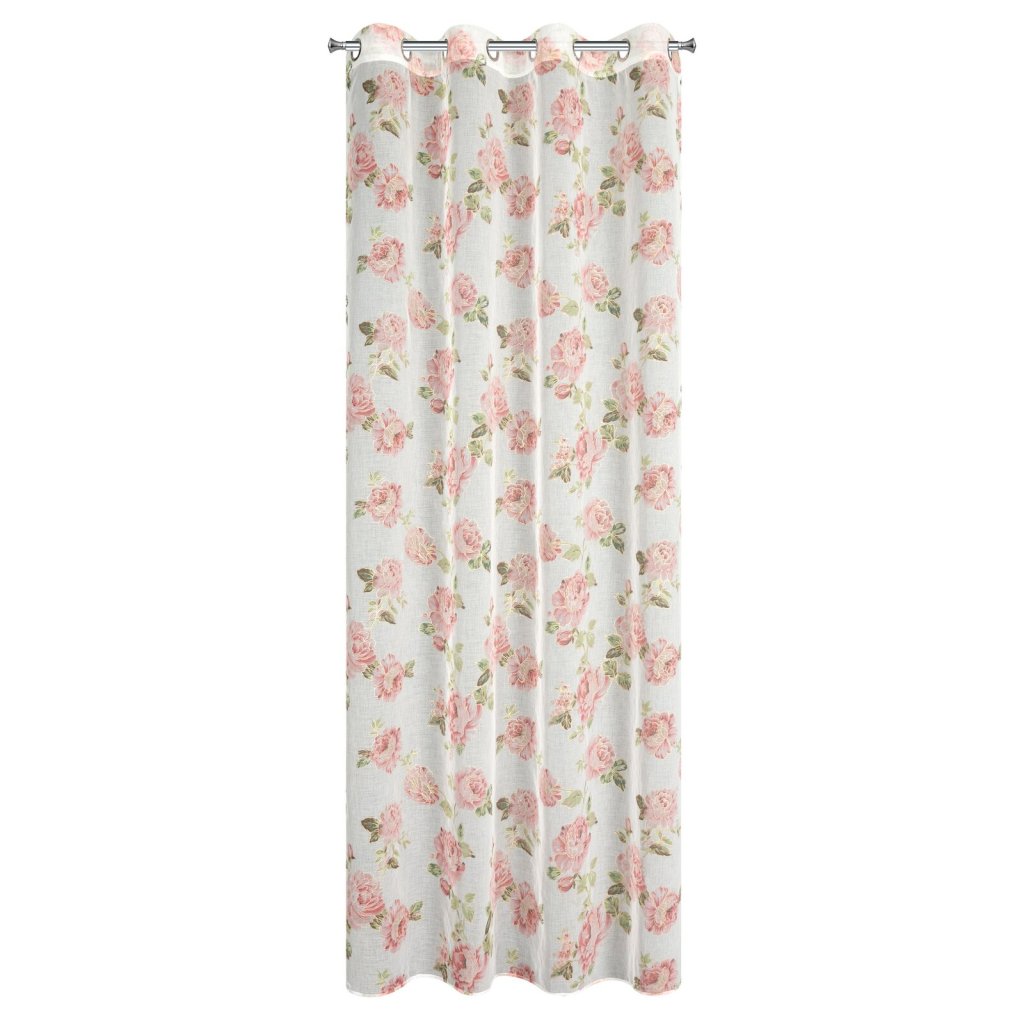 Závěs s botanickým motivem s lesklým potiskem, šířka: 140 cm, délka: 250 cm, barva: bílá, hmotnost: 70 GSM, složení: 100% polyester.Doplňkové parametry
