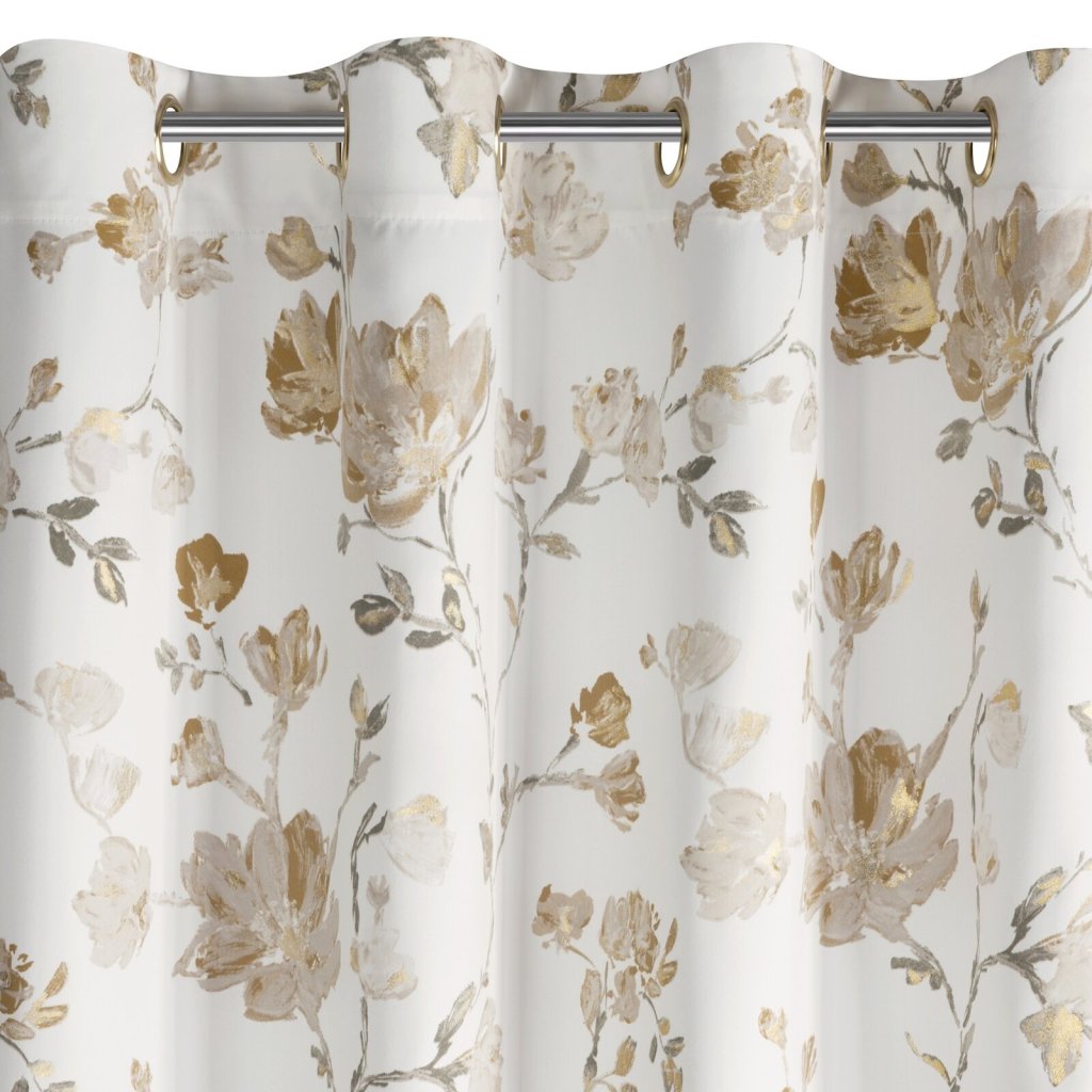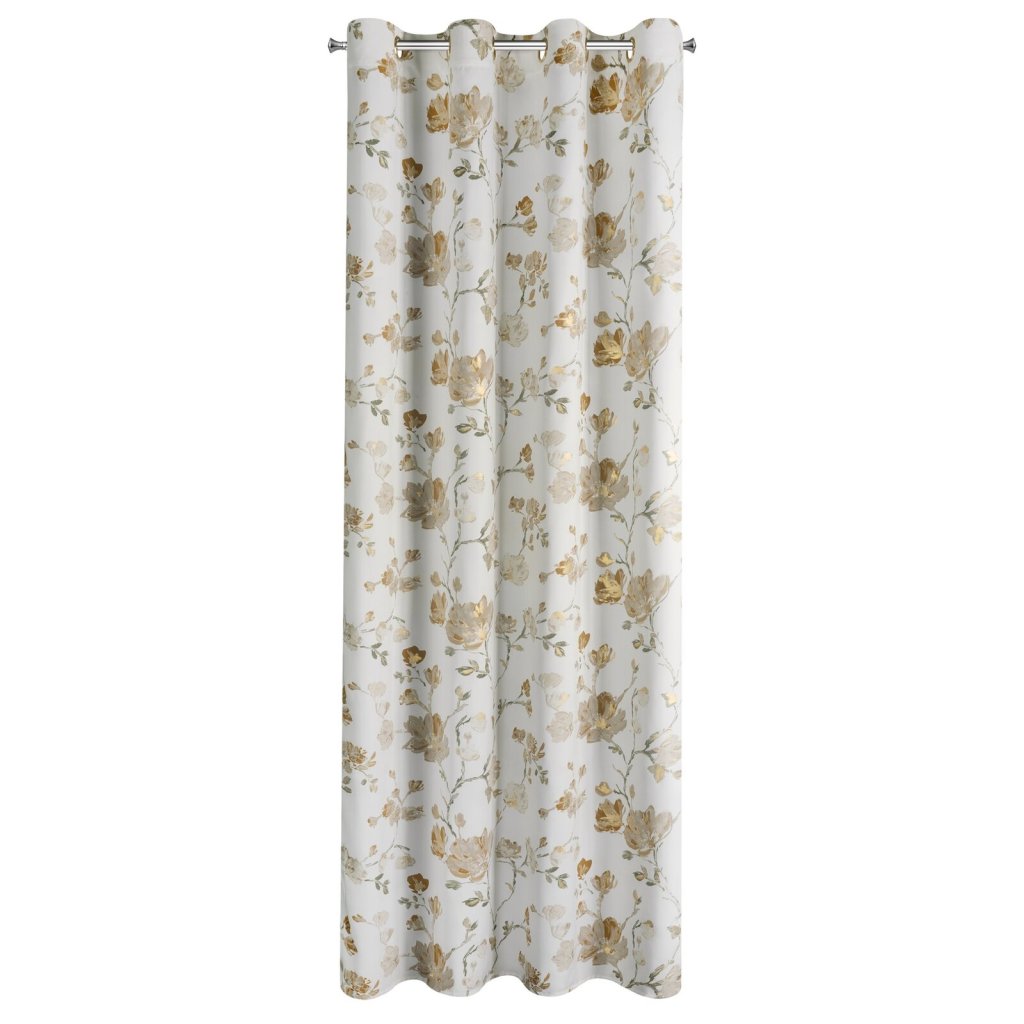 Dodejte svému interiéru elegantní a útulný nádech s dekoračním závěsem NELIA s jemným květinovým potiskem se zlatým odleskem. Šířka: 140 cm, délka: 250 cm, barva: vícebarevná, hmotnost: 190 GSM, složení: 100% polyester.Doplňkové parametry