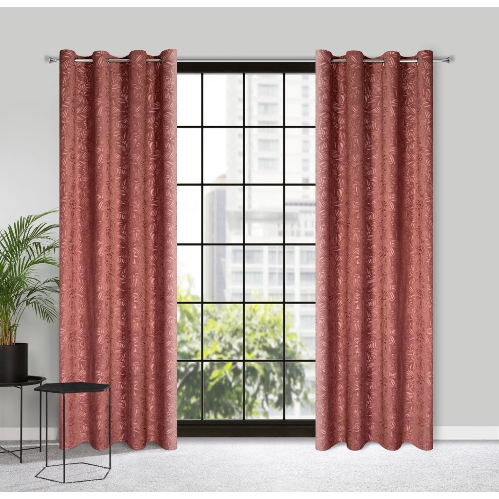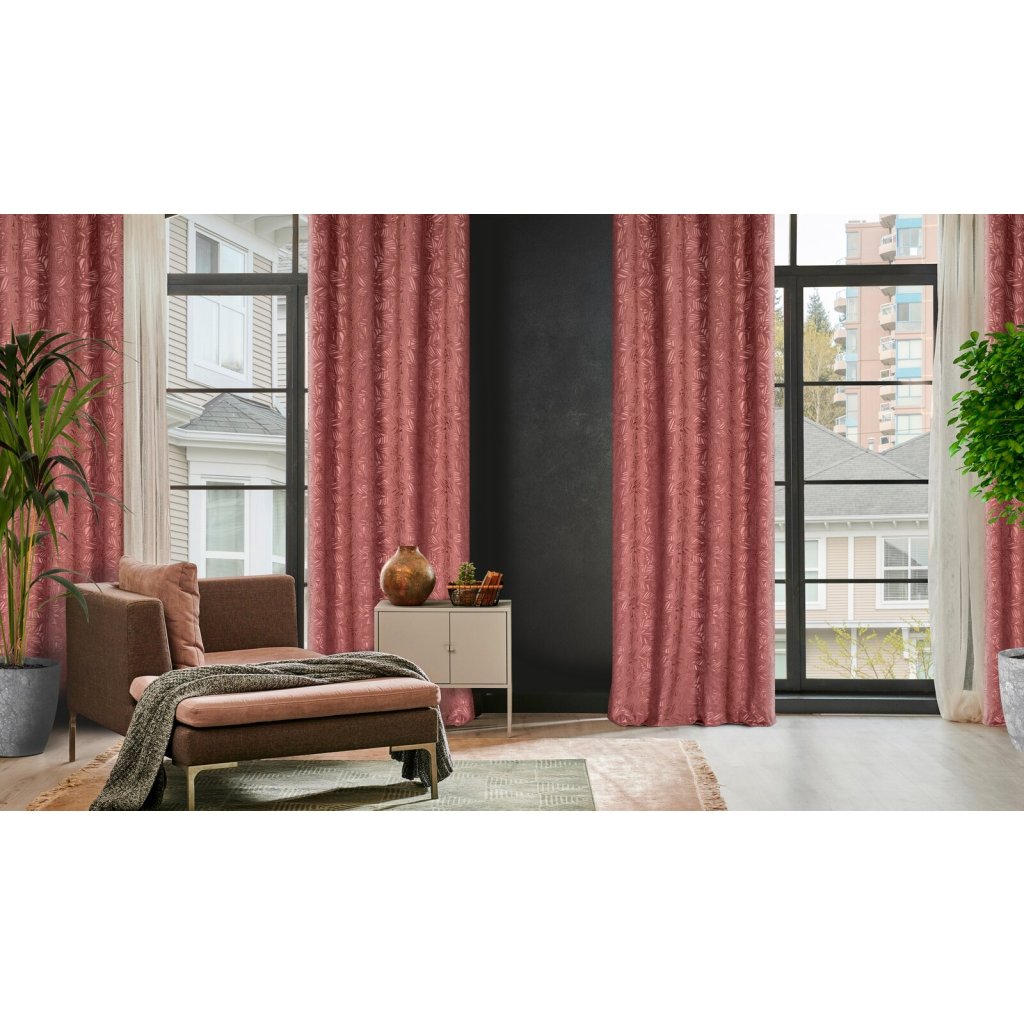 Sametový závěs s rostlinným motivem šířka: 140 cm, délka: 250 cm, barva: starorůžová, hmotnost: 180 GSM, složení: 100 % polyesterDoplňkové parametry
