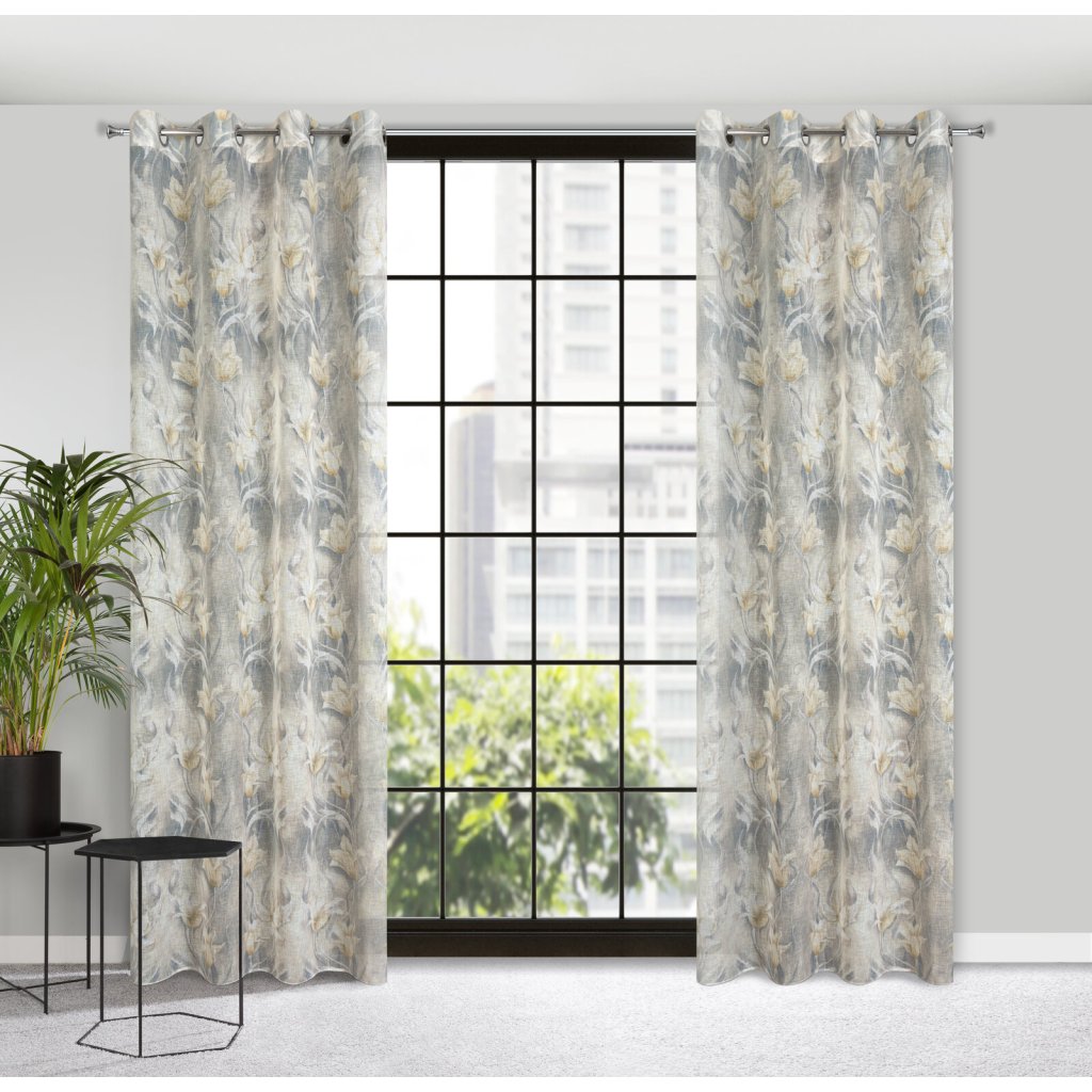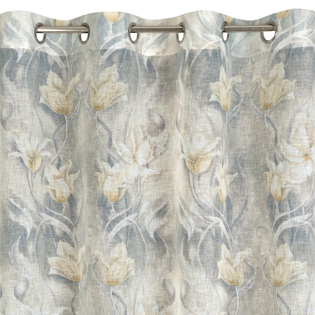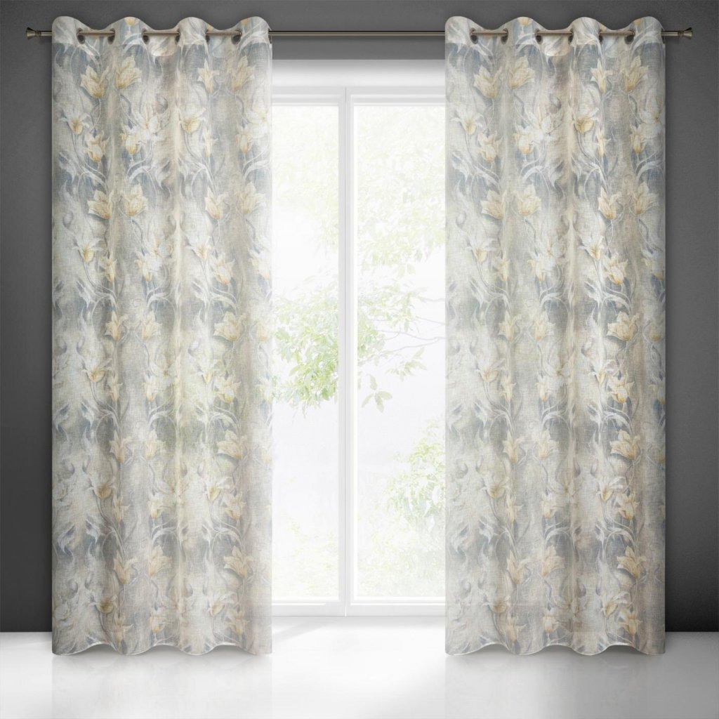 Klasický textilní závěs s plátěnou strukturou zdobený pastelovým potiskem zahradních květin. Střední úroveň stínění. Tkanina se lehce žehlí. Šířka: 140 cm, délka: 250 cm, barva: vícebarevná, hmotnost: 130 GSM, složení: 100 % polyesterDoplňkové parametry
