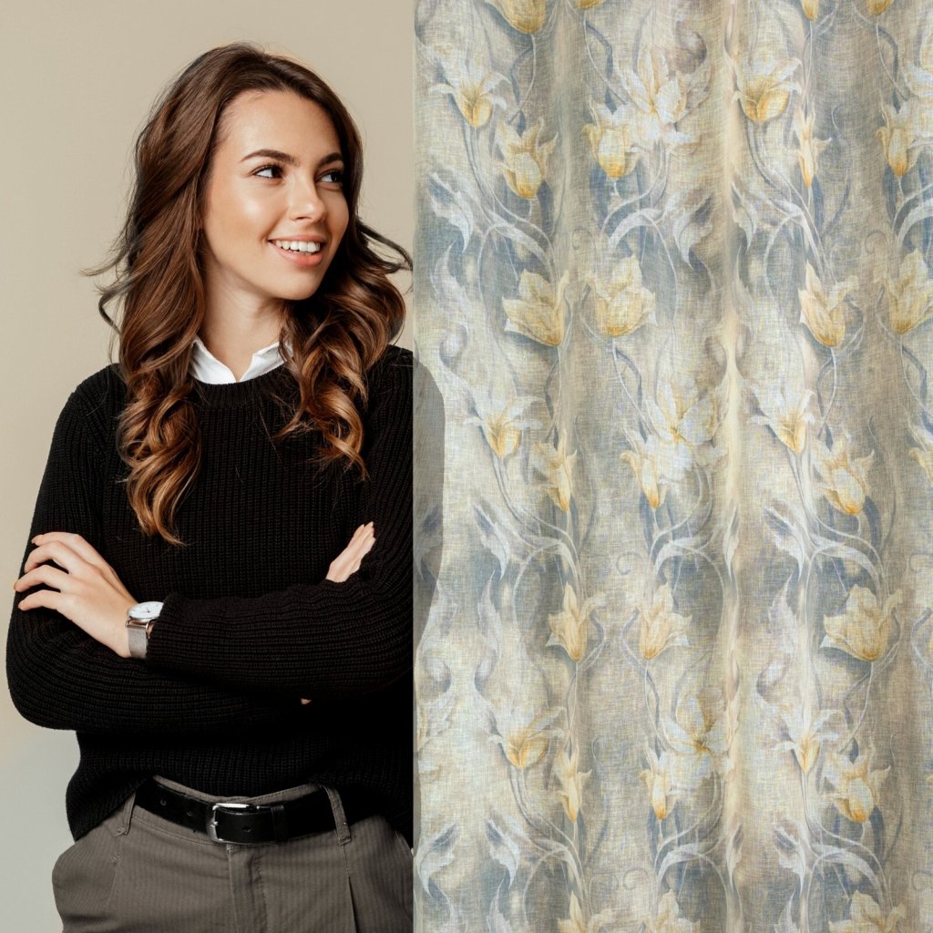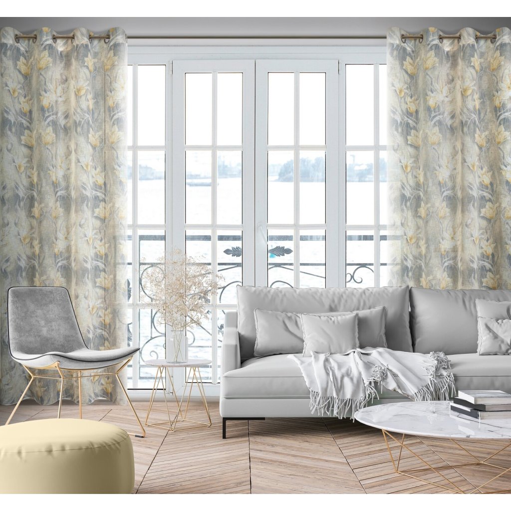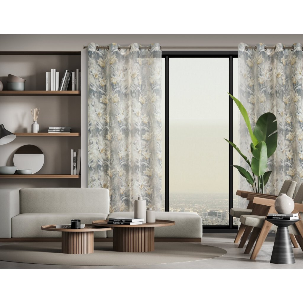Klasický textilní závěs s plátěnou strukturou zdobený pastelovým potiskem zahradních květin. Střední úroveň stínění. Tkanina se lehce žehlí. Šířka: 140 cm, délka: 250 cm, barva: vícebarevná, hmotnost: 130 GSM, složení: 100 % polyesterDoplňkové parametry