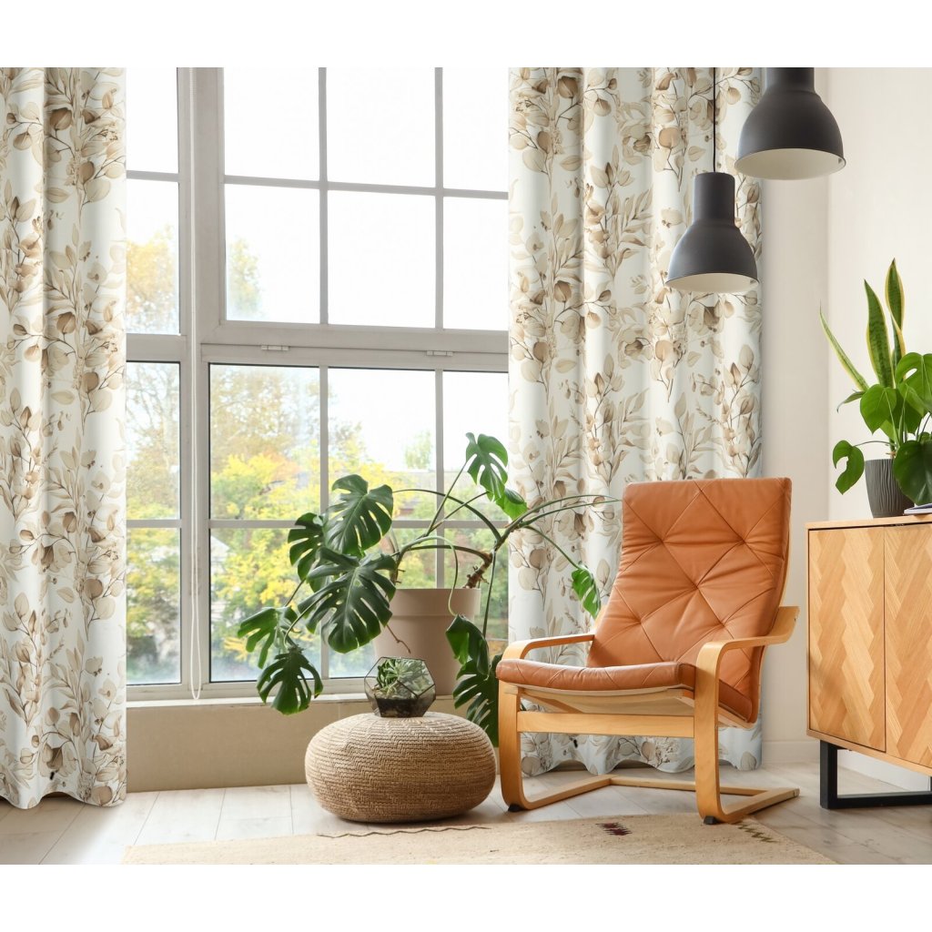 Dodejte svému interiéru eleganci se závěsem OLENI s lesklým potiskem. Jeho jemný béžový odstín v kombinaci s decentním rostlinným motivem vytváří harmonickou atmosféru. Šířka: 140 cm, délka: 250 cm, barva: vícebarevná, hmotnost: 190 GSM, složení: 100% polyester.Doplňkové parametry