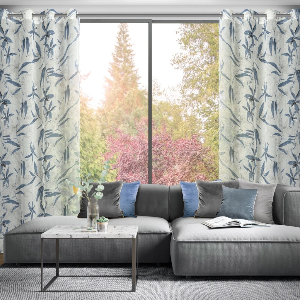Hotový závěs s květinovým motivem a lesklým potiskem, šířka: 140 cm, délka: 250 cm, barva: vícebarevná, hmotnost: 75 GSM, složení: 100% polyester.Doplňkové parametry