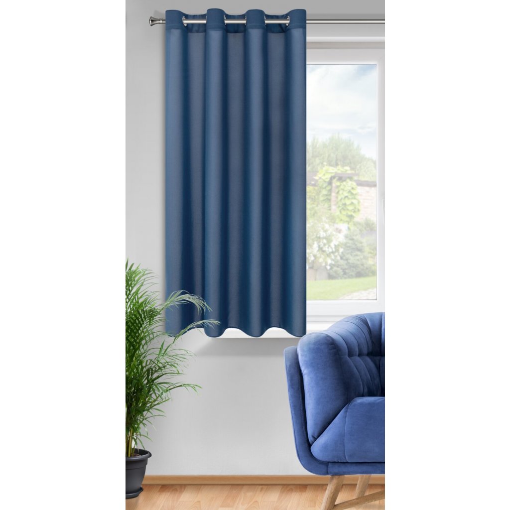 Hotový jednobarevný matný závěs, šířka: 140 cm, délka: 175 cm, barva: tmavě modrá, gramáž: 140 GSM, složení: 100% polyester.Doplňkové parametry