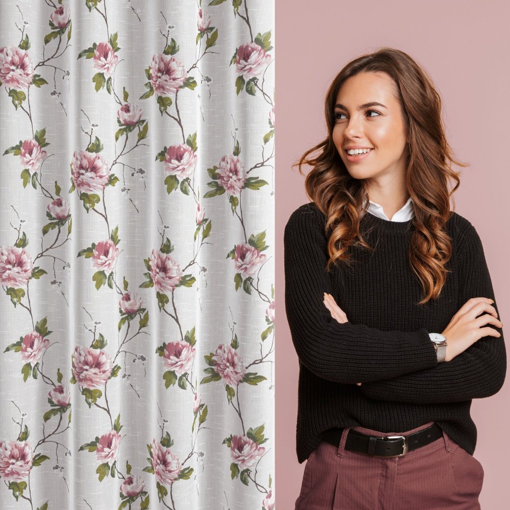 Vneste do svého domova svěžest a přirozenou krásu se závěsem RUTH v eko stylu. Jemný květinový potisk v odstínech růžové a zelené vytváří harmonickou atmosféru plnou klidu a elegance. Bílý podklad dodává interiéru lehkost a opticky prosvětlí prostor. Šířka: 135 cm, délka: 250 cm, barva: vícebarevná, hmotnost: 80 GSM, složení: 100% polyester.Doplňkové parametry