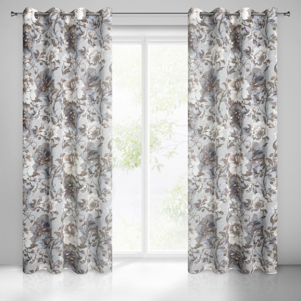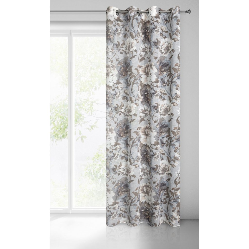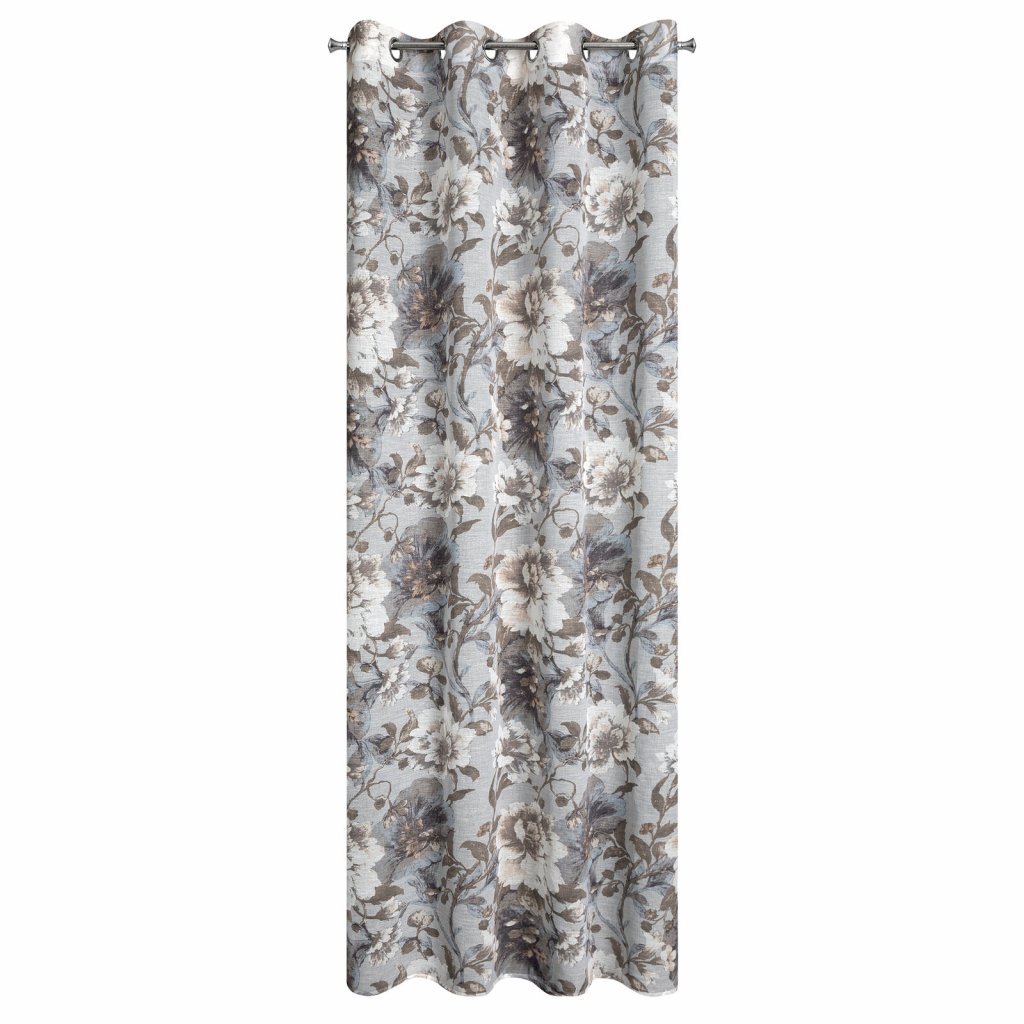 Závěs v eko stylu s květinovým potiskem, šířka: 140 cm, délka: 250 cm, barva: šedá, hmotnost: 110 GSM, složení: 100% polyester.Doplňkové parametry