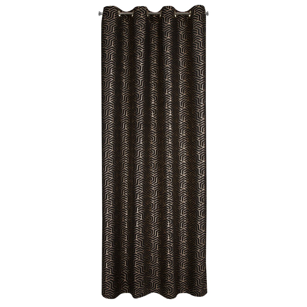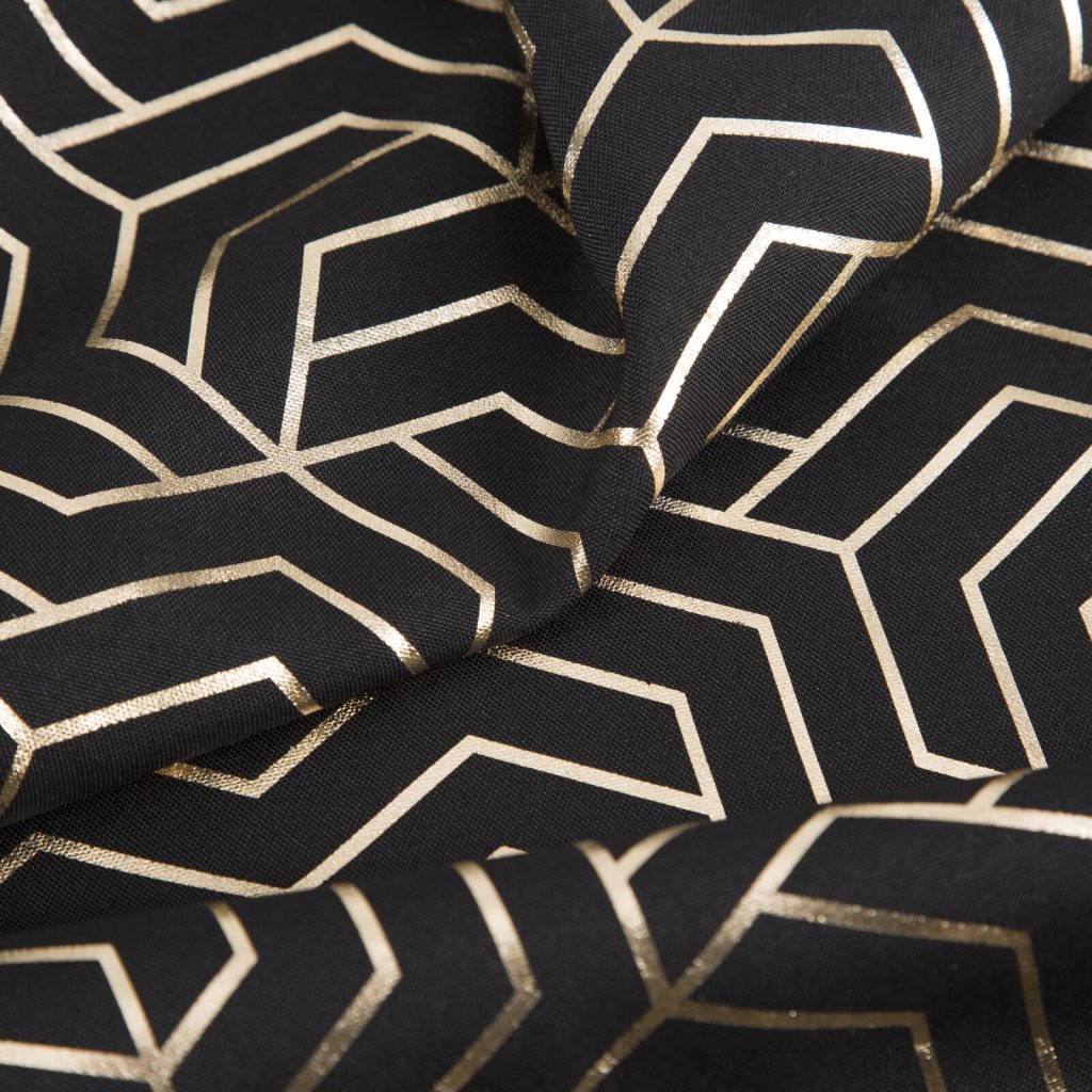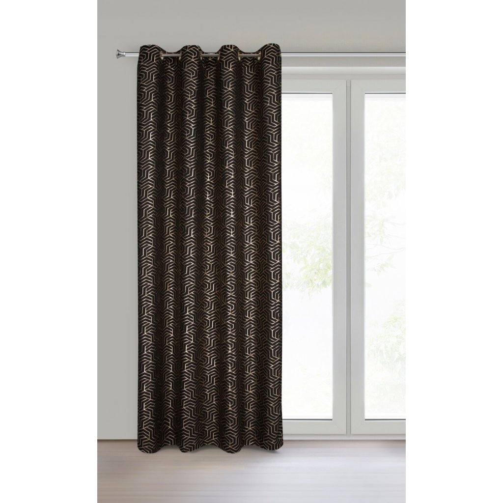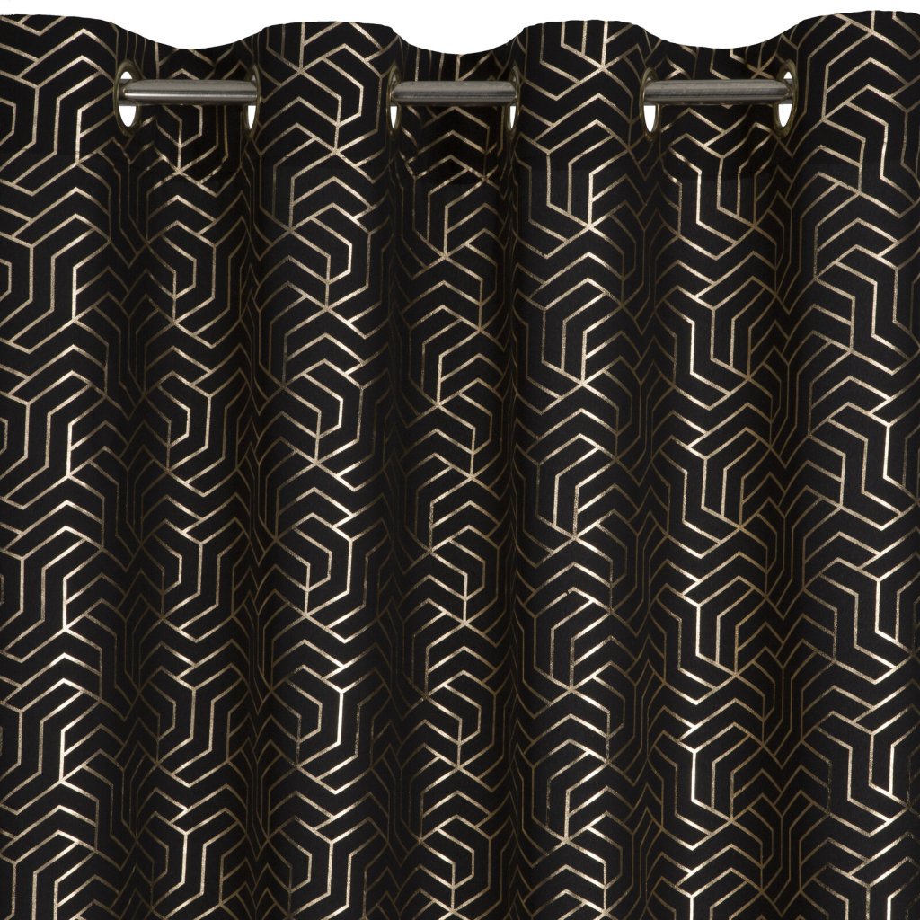Hotový závěs SEMI z látky oxford, který zdobí geometrický potisk, který je v lesklém šampaňském potisku. Tento typ tkaniny je hustý, odolný a má jemnou texturu, což mu dodává elegantní vzhled. Světlá tkanina jemně chrání interiér před slunečním zářením, jemně filtruje světlo bez zatemnění interiéru. Šířka: 140 cm, délka: 250 cm, hmotnost: 140 GSM, barva: černá a šampaňská, složení: 100% polyester.Doplňkové parametry