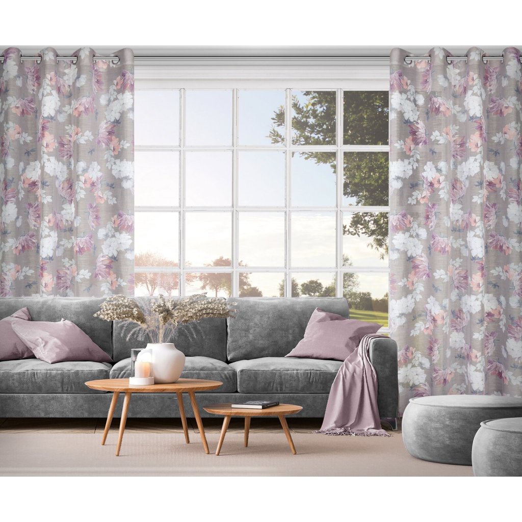 ZÁVĚS NA KROUŽCÍCH SHERRY 140X250 CM VZOROVANÁ