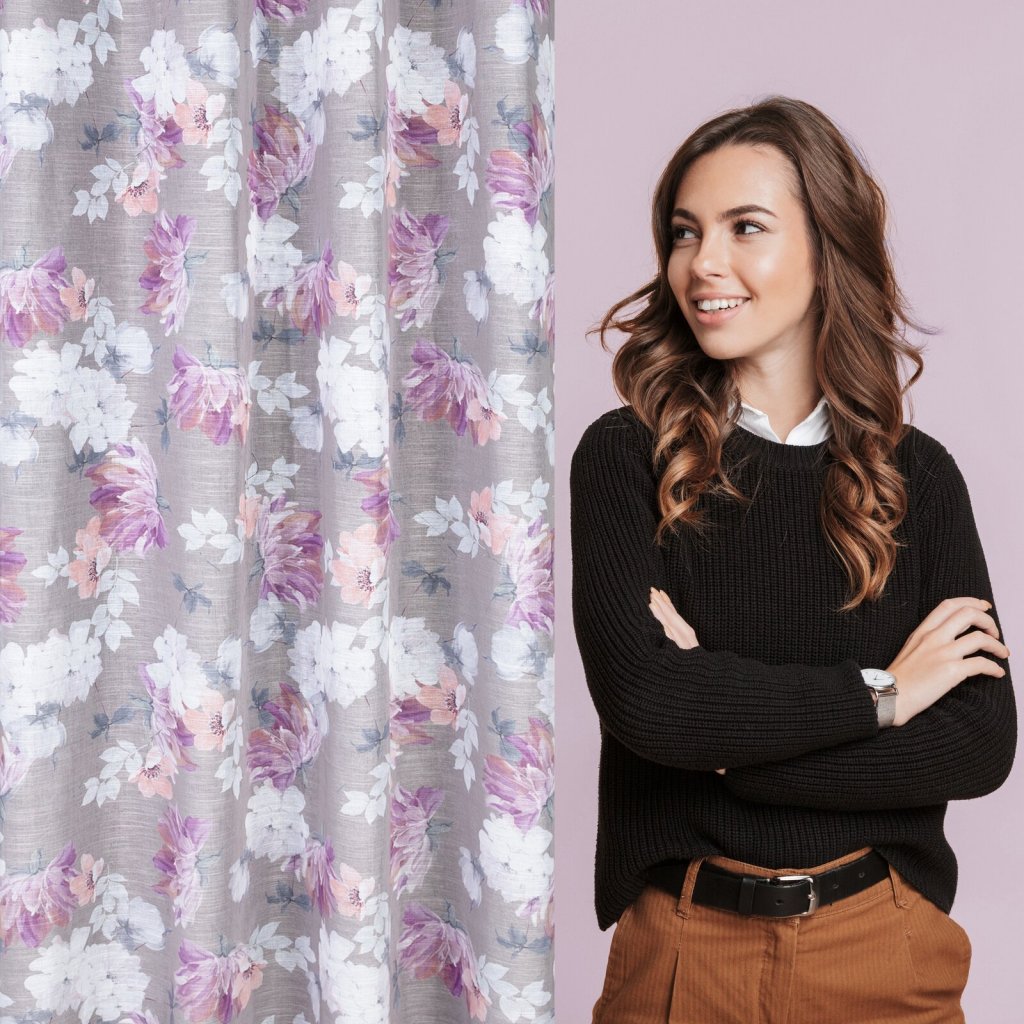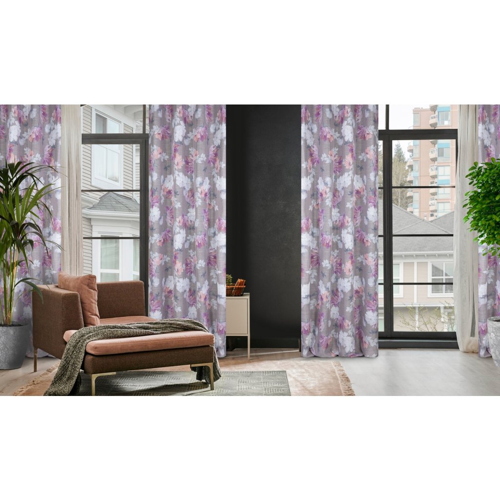 Závěs z etaminu s květinovým potiskem, šířka: 140 cm, délka: 250 cm, barva: vícebarevná, hmotnost: 80 GSM, složení: 100 % polyesterDoplňkové parametry