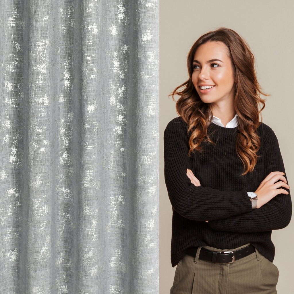 Vneste do svého interiéru přirozený šarm a jemnou záři pomocí závěsů SOLANA v ekologickém stylu. Vyroben z kvalitní tkaniny s viditelnou vazbou, který zaujme svojí přirozenou strukturou. Jemný tečkovaný pololesklý potisk dodává závěsu elegantní povrch, jemně odráží světlo. Šířka: 140 cm, délka: 250 cm, barva: stříbrná, hmotnost: 170 GSM, složení: 100% polyester.Doplňkové parametry