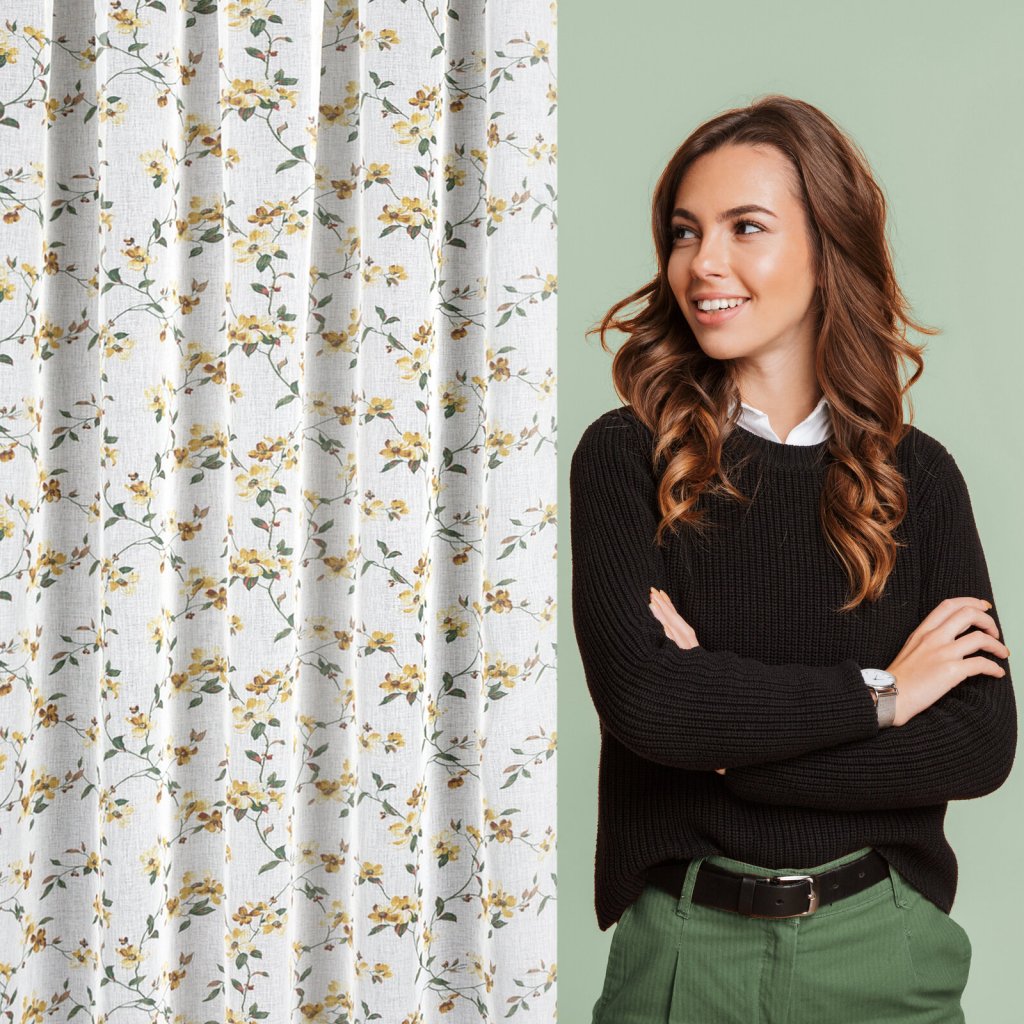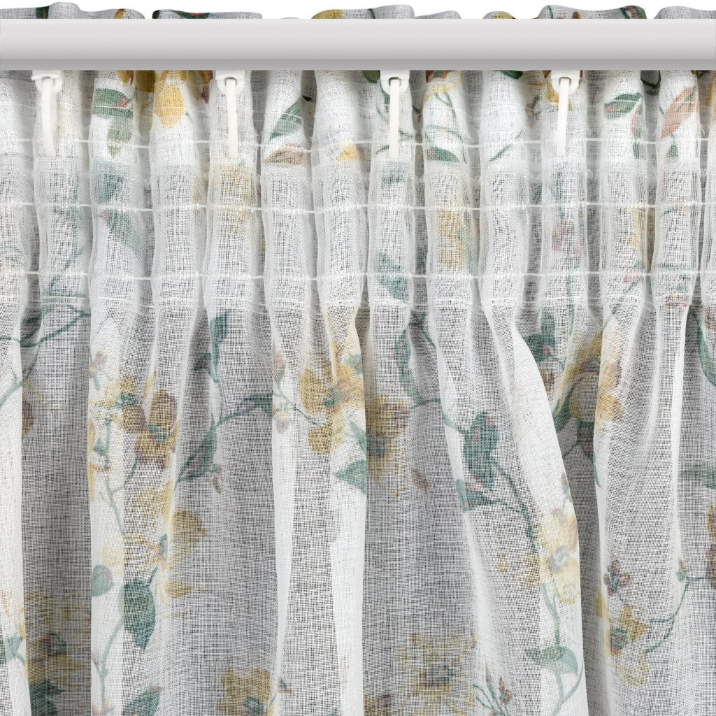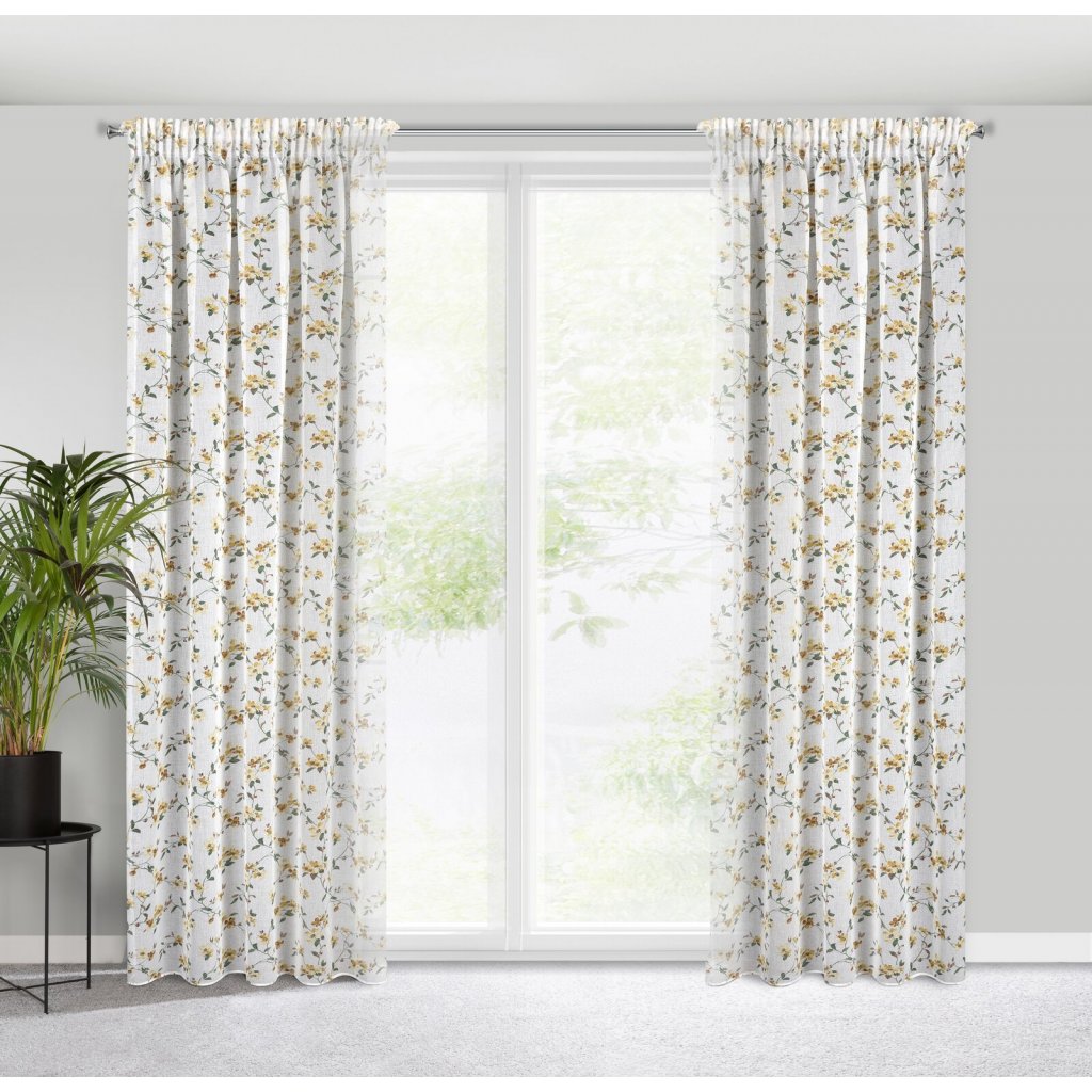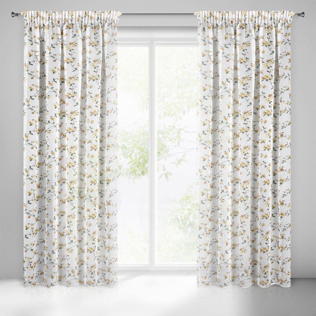 Hotový závěs s květinovým potiskem, šířka: 140 cm, délka: 270 cm, barva: bílá, hmotnost: 75 GSM, složení: 100% polyester.Doplňkové parametry