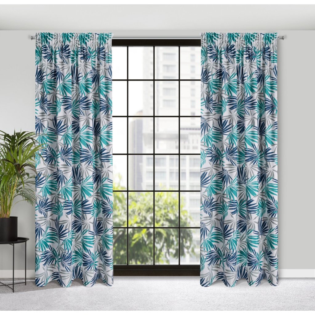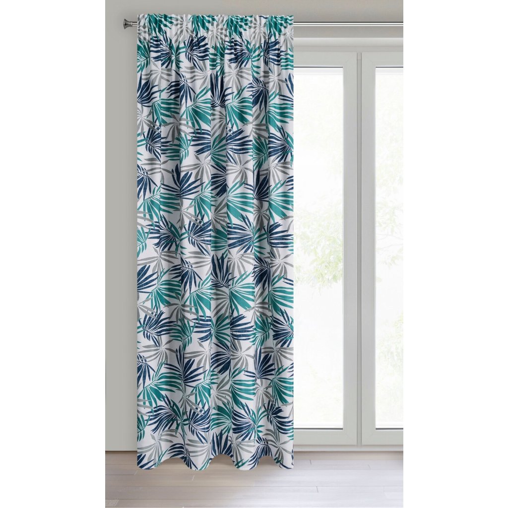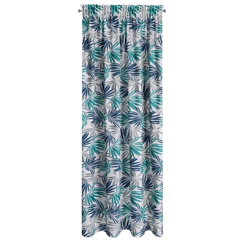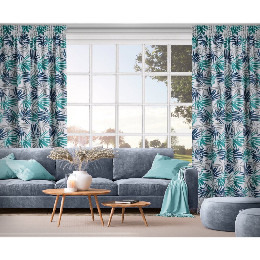 Světlý závěs ELIA z lehkého a vzdušného mikrovlákna, zdobený potiskem modrých a tyrkysových lístků na bílém podkladu, je doplňkem, který dokonale oživí interiér. Kontrastní barvy vytvářejí nevšední kompozici, která bude dobře působit v moderních interiérech. Lehká tkanina jemně chrání interiér před slunečním zářením avšak závěs má spíše dekorativně využijte. Potisk je jen na jedné straně, druhá strana závěsu je bílá. Šířka: 140 cm, délka: 270 cm, barva: vícebarevná, hmotnost: 75 GSM, šířka řasící pásky: 8 cm, výška lemu nad páskou: 3 cm, složení: 100% polyester.Doplňkové parametry