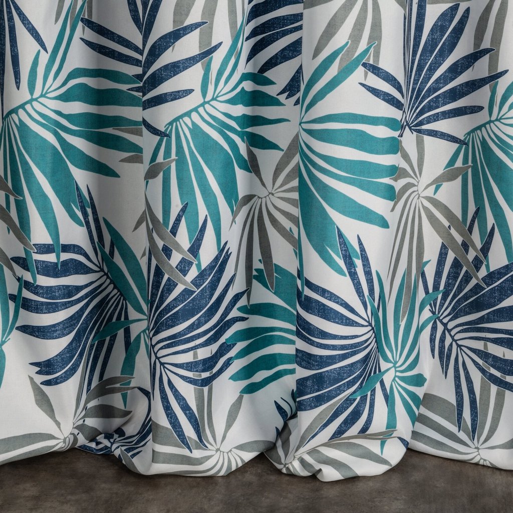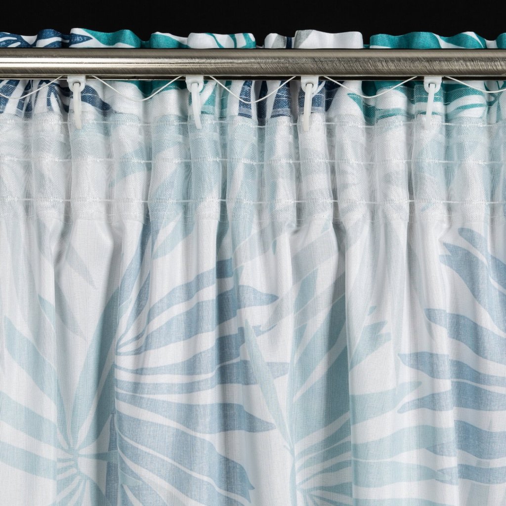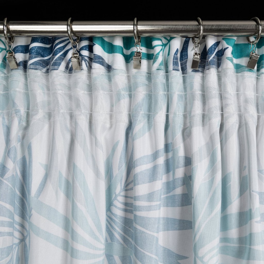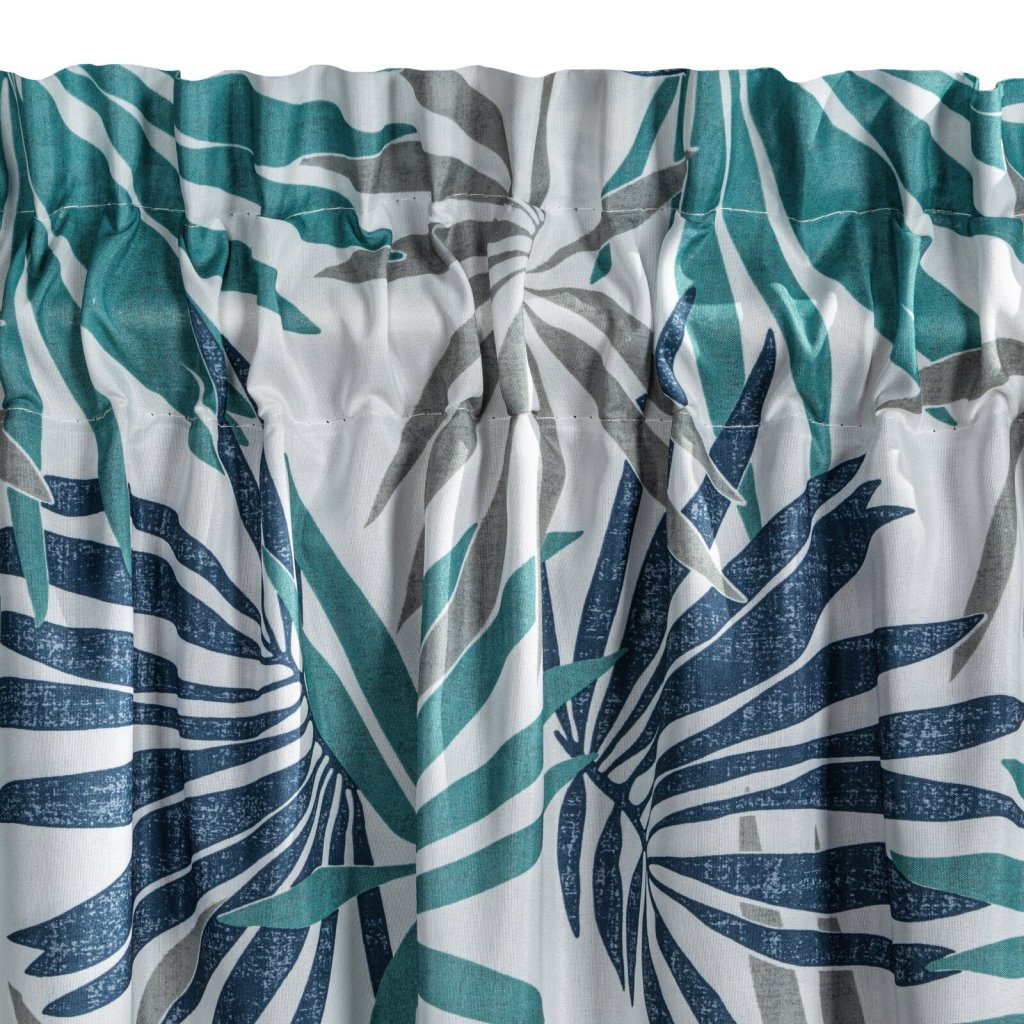 Světlý závěs ELIA z lehkého a vzdušného mikrovlákna, zdobený potiskem modrých a tyrkysových lístků na bílém podkladu, je doplňkem, který dokonale oživí interiér. Kontrastní barvy vytvářejí nevšední kompozici, která bude dobře působit v moderních interiérech. Lehká tkanina jemně chrání interiér před slunečním zářením avšak závěs má spíše dekorativně využijte. Potisk je jen na jedné straně, druhá strana závěsu je bílá. Šířka: 140 cm, délka: 270 cm, barva: vícebarevná, hmotnost: 75 GSM, šířka řasící pásky: 8 cm, výška lemu nad páskou: 3 cm, složení: 100% polyester.Doplňkové parametry