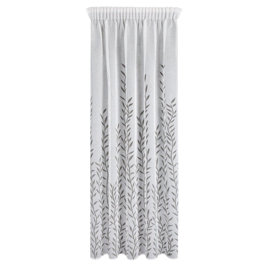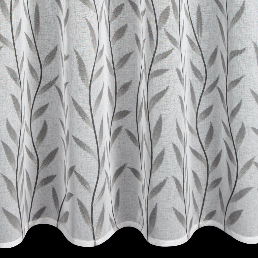 Hotový závěs GLORI dodá vašemu interiéru eleganci a svěžest. Etamin je lehký, vzdušný a jemně propouští světlo, díky čemuž je interiér světlý a útulný a zároveň zajišťuje soukromí. Závěs má krásný potisk jemných lístků s přidáním lesklých akcentů, které do interiéru vnesou trochu přírody a barev. Šířka: 140 cm, délka: 270 cm, barva: bílá a stříbrná, složení: 100% polyester.Doplňkové parametry