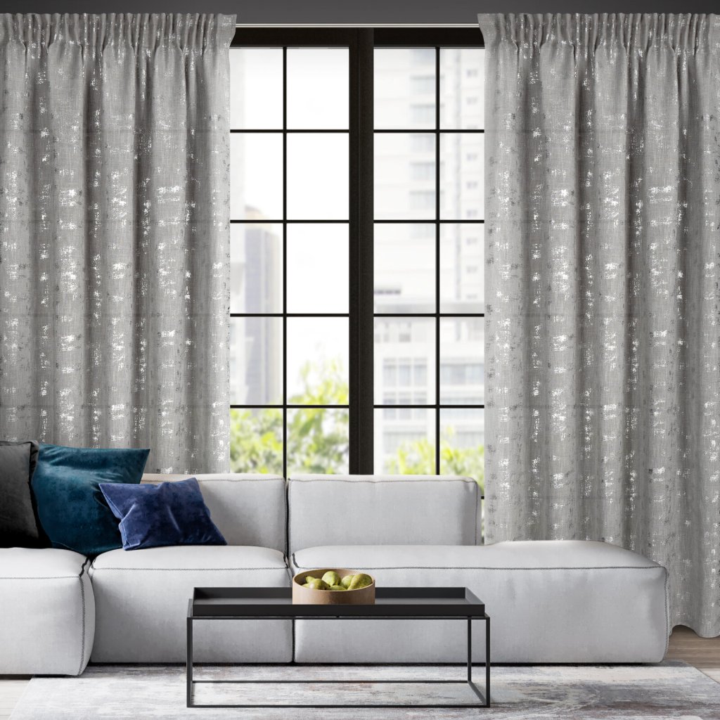 Hotový závěs INES s přídavkem lnu je spojením přirozené elegance a jemného šarmu. Závěs je vyroben z látky s viditelnou vazbou a má výrazný matný povrch. Dodatečný lněný prvek činí materiál vzdušným a odolným. Závěs je zdoben jemným, lesklým potiskem, který vnáší do prostoru jemnou eleganci, aniž by zahltil aranžmá. Šířka: 140 cm, délka: 270 cm, barva: stříbrná, hmotnost: 180 GSM, složení: 5% len, 95% polyester.Doplňkové parametry