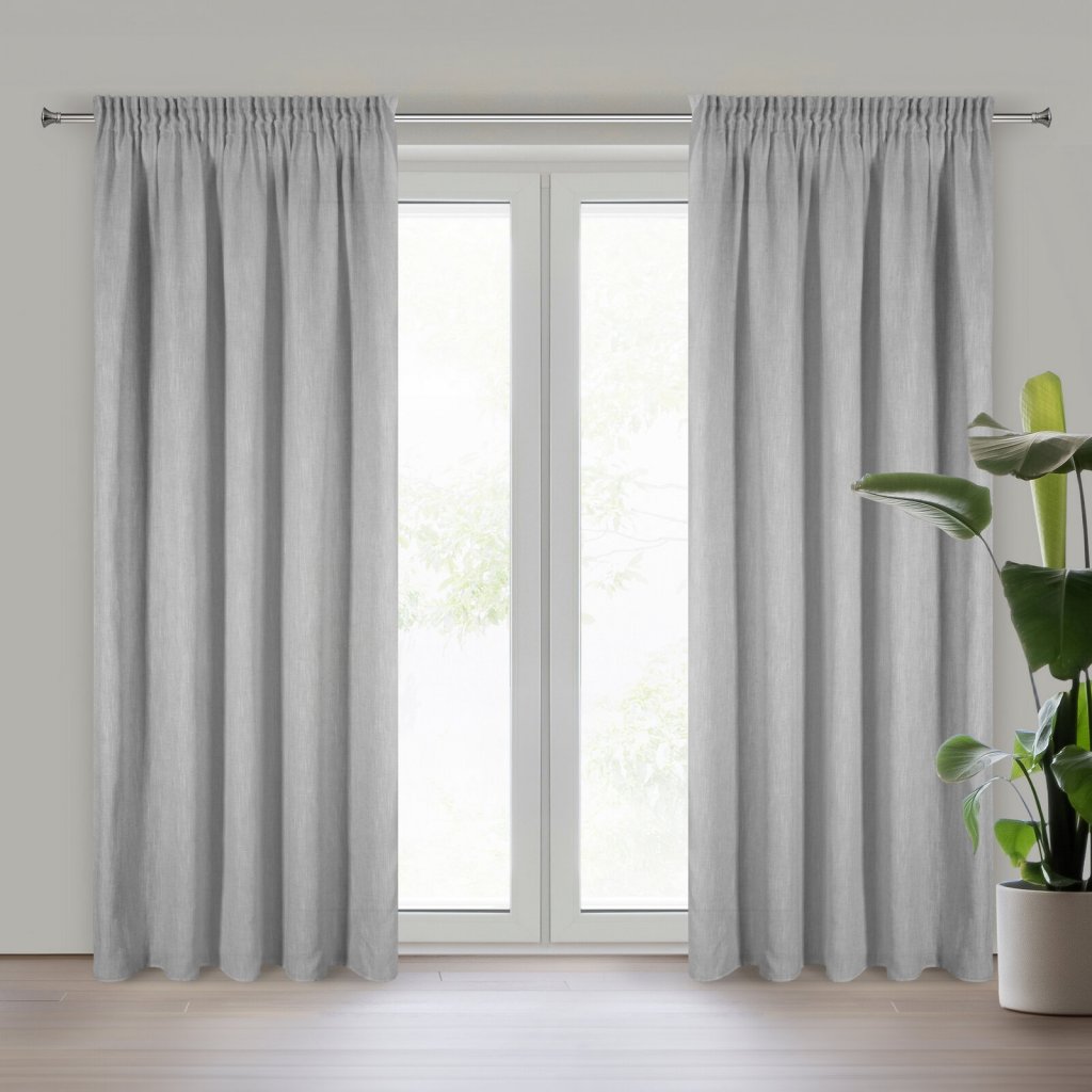 Jednobarevný závěs, šířka: 140 cm, délka: 300 cm, barva: stříbrná, složení: 95% polyester 5% len.Doplňkové parametry