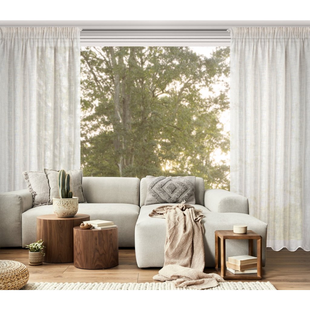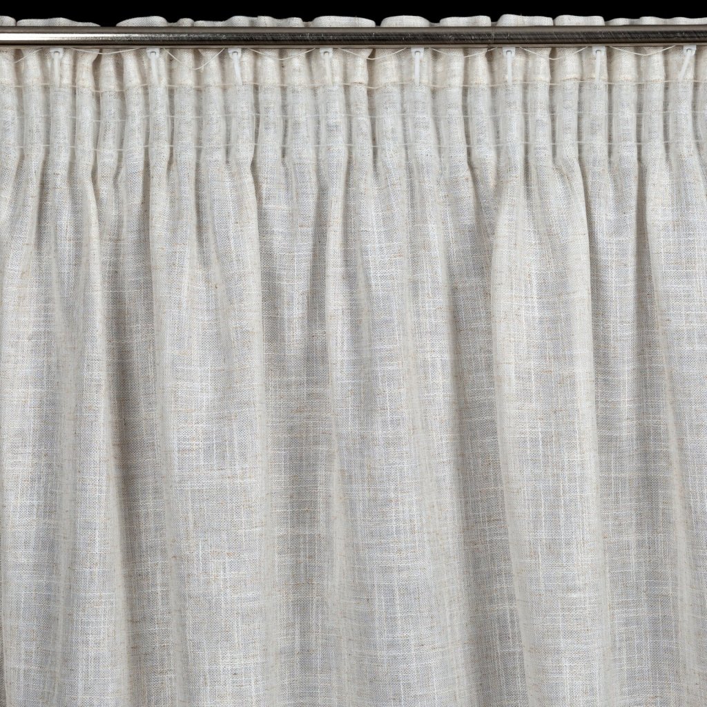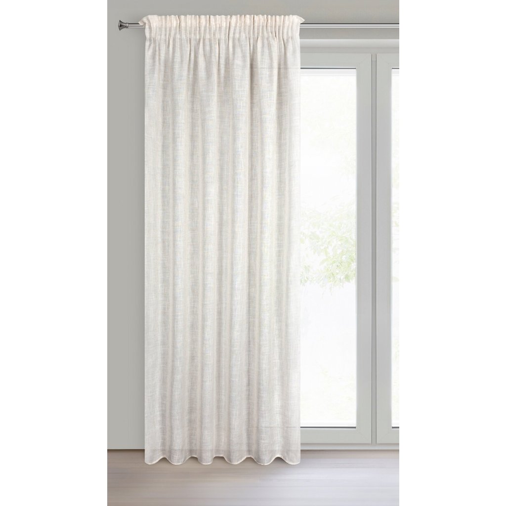 Hotový závěs v ekologickém stylu, vyrobený z látky s příměsí lnu, šířka: 140 cm, délka: 270 cm, barva: krémová, gramáž: 185 GSM, složení: 95% polyester, 5% len.Doplňkové parametry