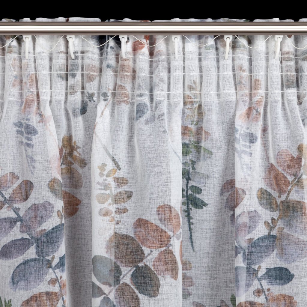 Závěs z etaminu s botanickým motivem, šířka: 140 cm, délka: 270 cm, barva: vícebarevná, hmotnost: 70 GSM, složení: 100% polyester. Závěs se hustotou látky přibližuje k zácloně.Doplňkové parametry