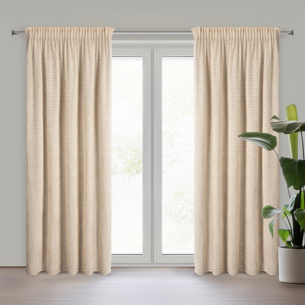 Hotový závěs s aplikací, šířka: 135 cm, délka: 270 cm, barva: béžová, hmotnost: 95 GSM, složení: 100% polyester.Doplňkové parametry