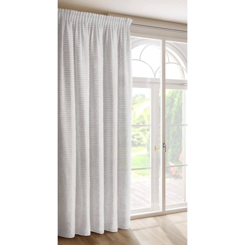 Hotový závěs s aplikací šířka: 135 cm, délka: 270 cm, barva: bílá, hmotnost: 95 GSM, složení: 100% polyester.Doplňkové parametry