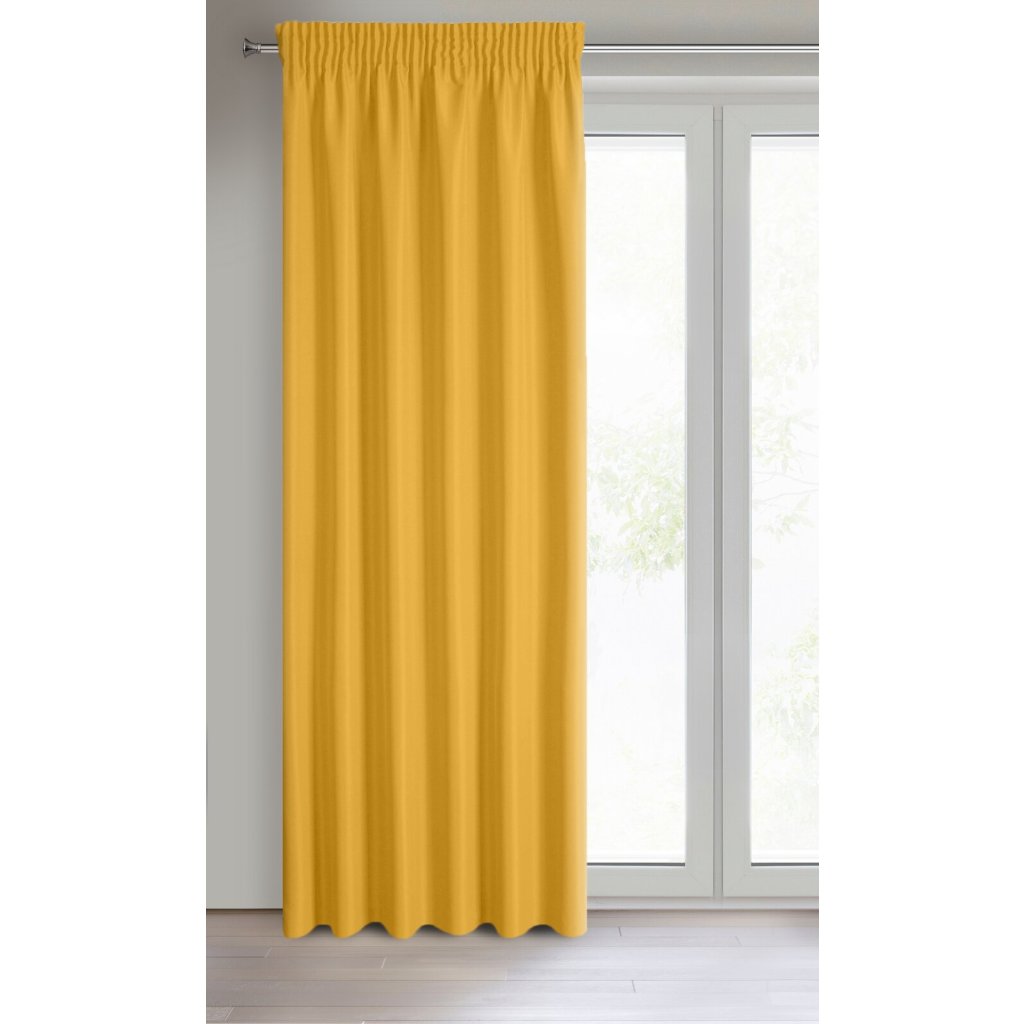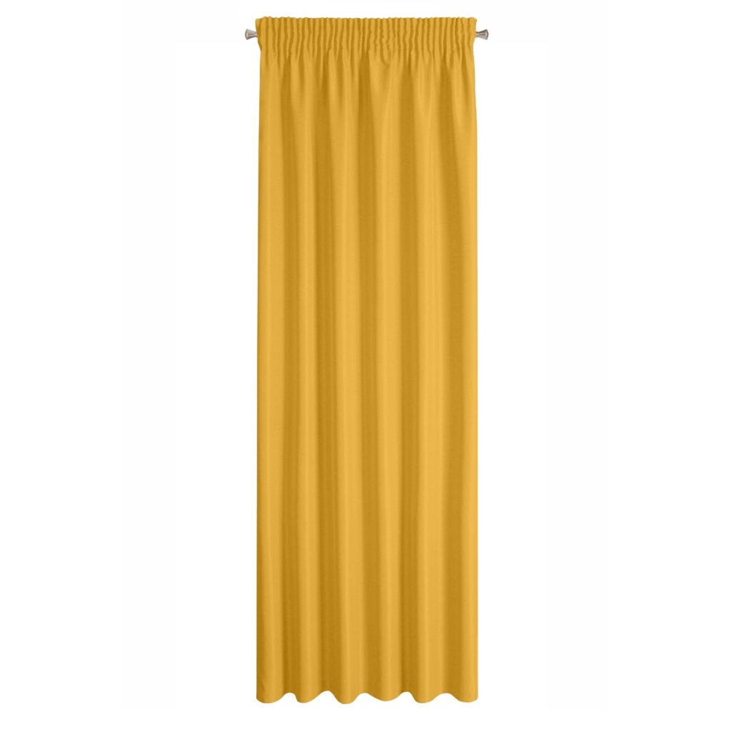 Jednobarevný závěs z měkké tkaniny s matným povrchem a saténovou vazbou. Lehce se žehlí. Šířka: 140 cm, délka: 270 cm, barva: hořčicová, hmotnost: 140 GSM, složení: 100 % polyesterDoplňkové parametry