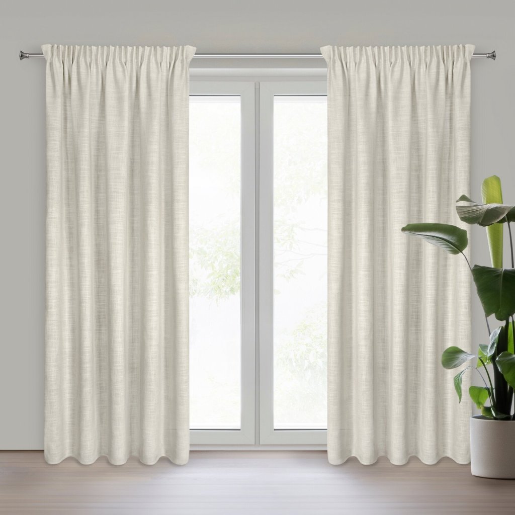 Závěs v eko stylu, s přídavkem lnu s jemným leskem, šířka: 140 cm, délka: 270 cm, barva: tmavě béžová, gramáž: 180 GSM, složení: 95% polyester, 5% len.Doplňkové parametry