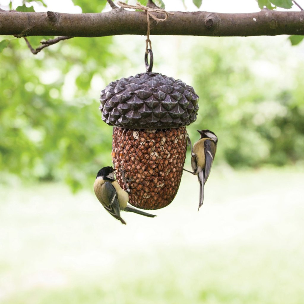 Závěsné krmítko pro ptáky Acorn, 30x13,5 cm, kov/polyesterová pryskyřice, šedá