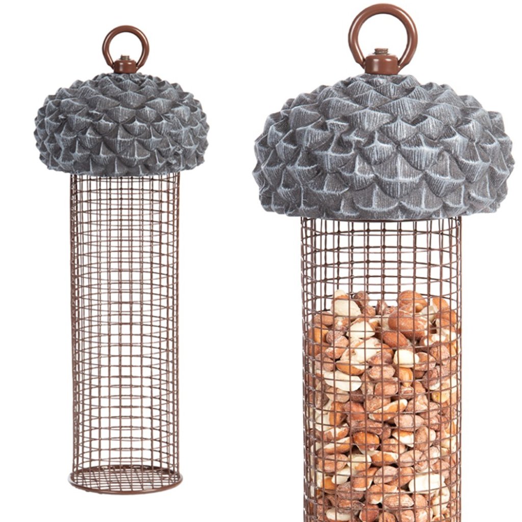 Závěsné krmítko pro ptáky Acorn2, 27,5x10 cm, kov/polyesterová pryskyřice, šedá