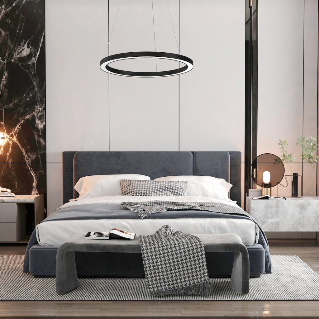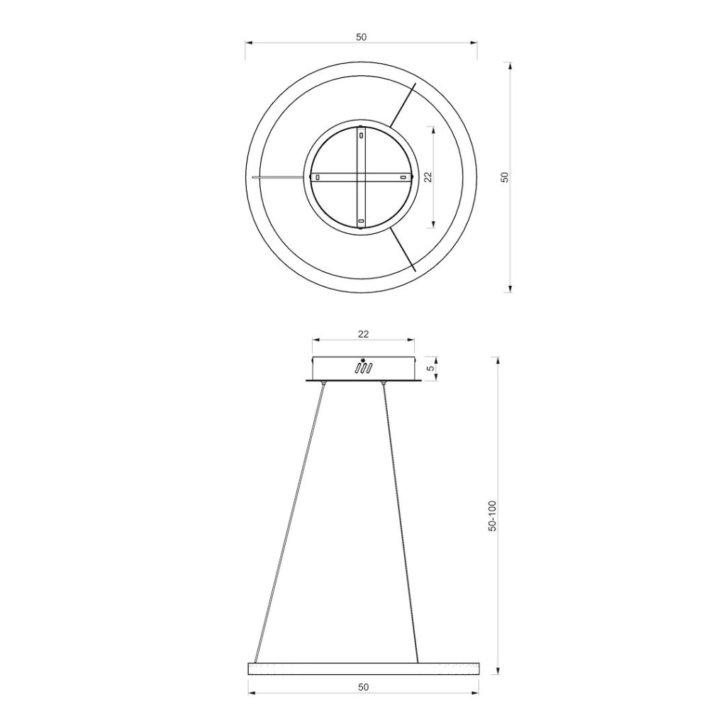 Model s jedním kruhem, jako je tento, je ideální pro menší prostory nebo jako jemný designový akcent v kompozici s jiným osvětlením. Jeho čistý kruhový tvar působí sofistikovaně a vnáší do prostoru nadčasovost bez zbytečných ozdob.